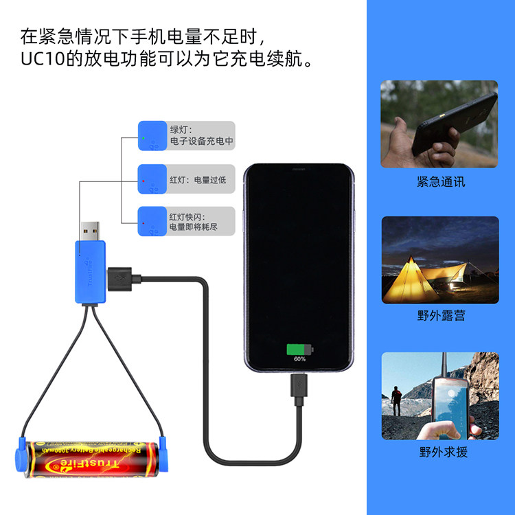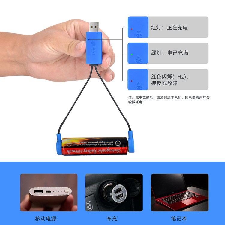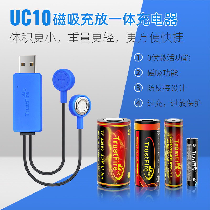 📚 TrustFire26650 18650 10440 16340锂电池手电筒磁吸充电器可放电