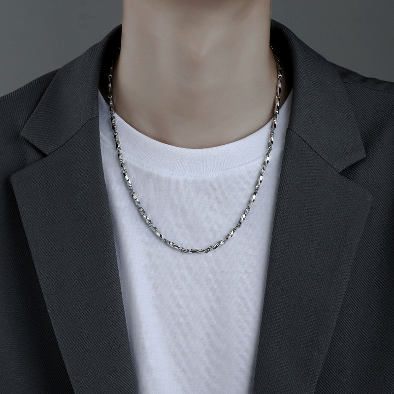 📚 莫比乌斯项链男生新款潮牌百搭轻奢锁骨链钛钢首饰品银色男士项链