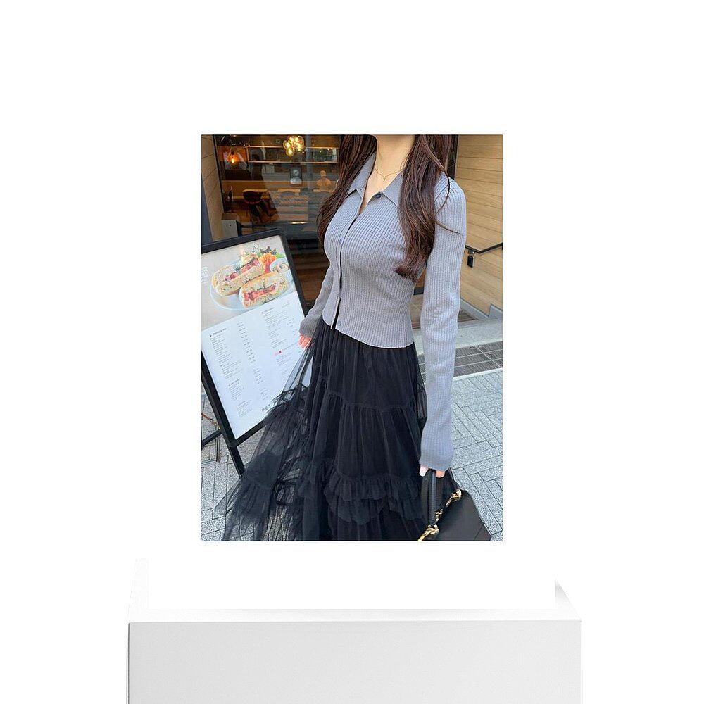📚 日本直邮日潮 GRL襟付き罗纹针织开衫×纱裙套装ru1259裙子半身裙