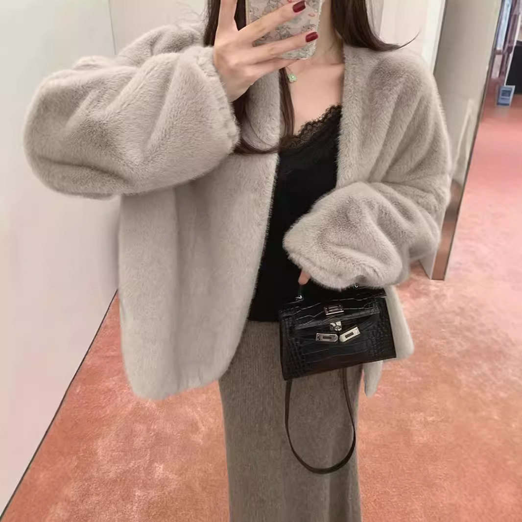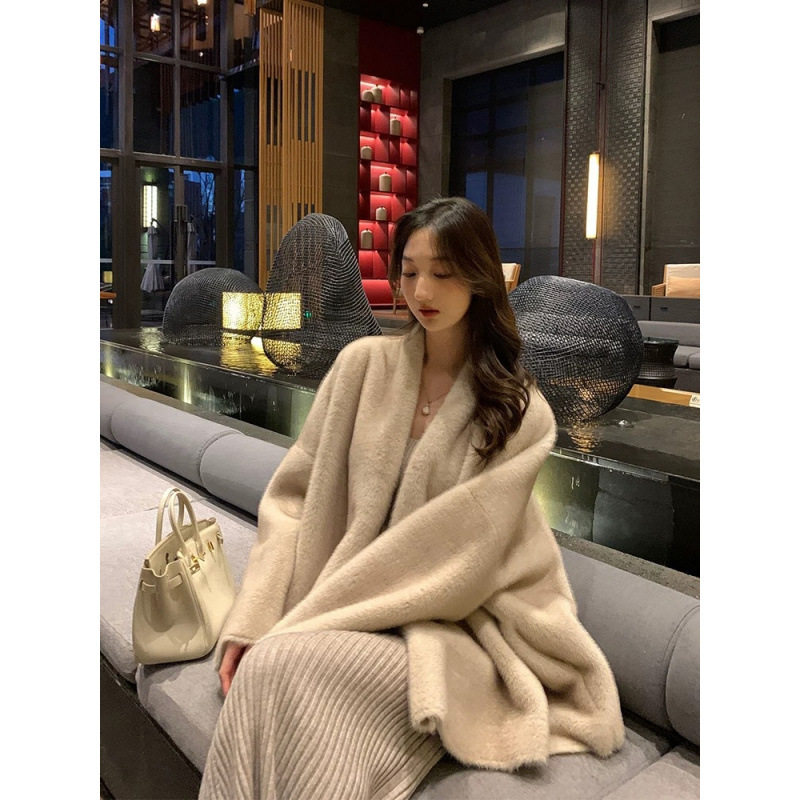 📚 财阀千金氛围感慵懒环保中长款水貂绒皮草时尚洋气水貂毛毛冬外套