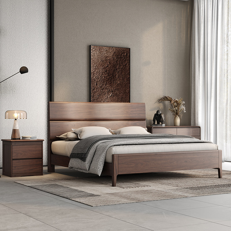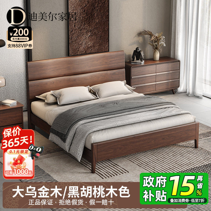📚 乌金木全实木床现代新中式黑胡桃木色主卧高端家具简约1米8双人床