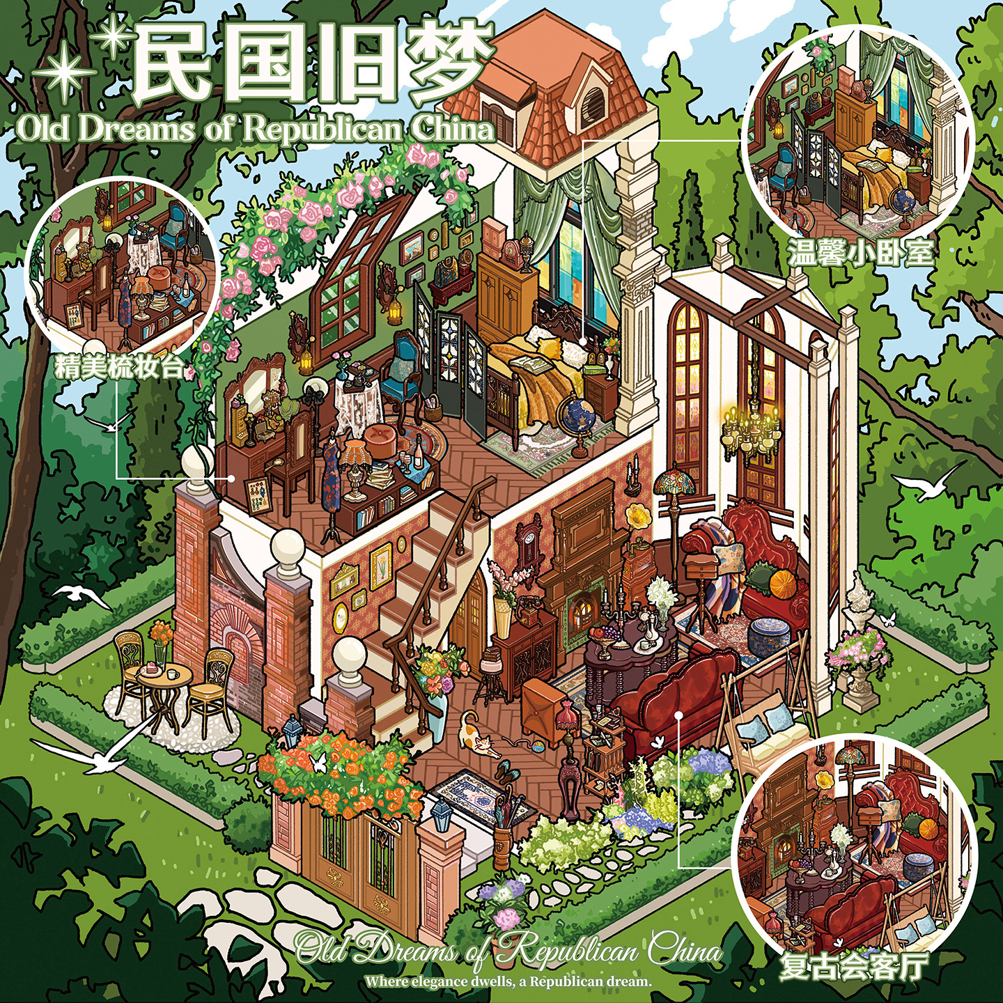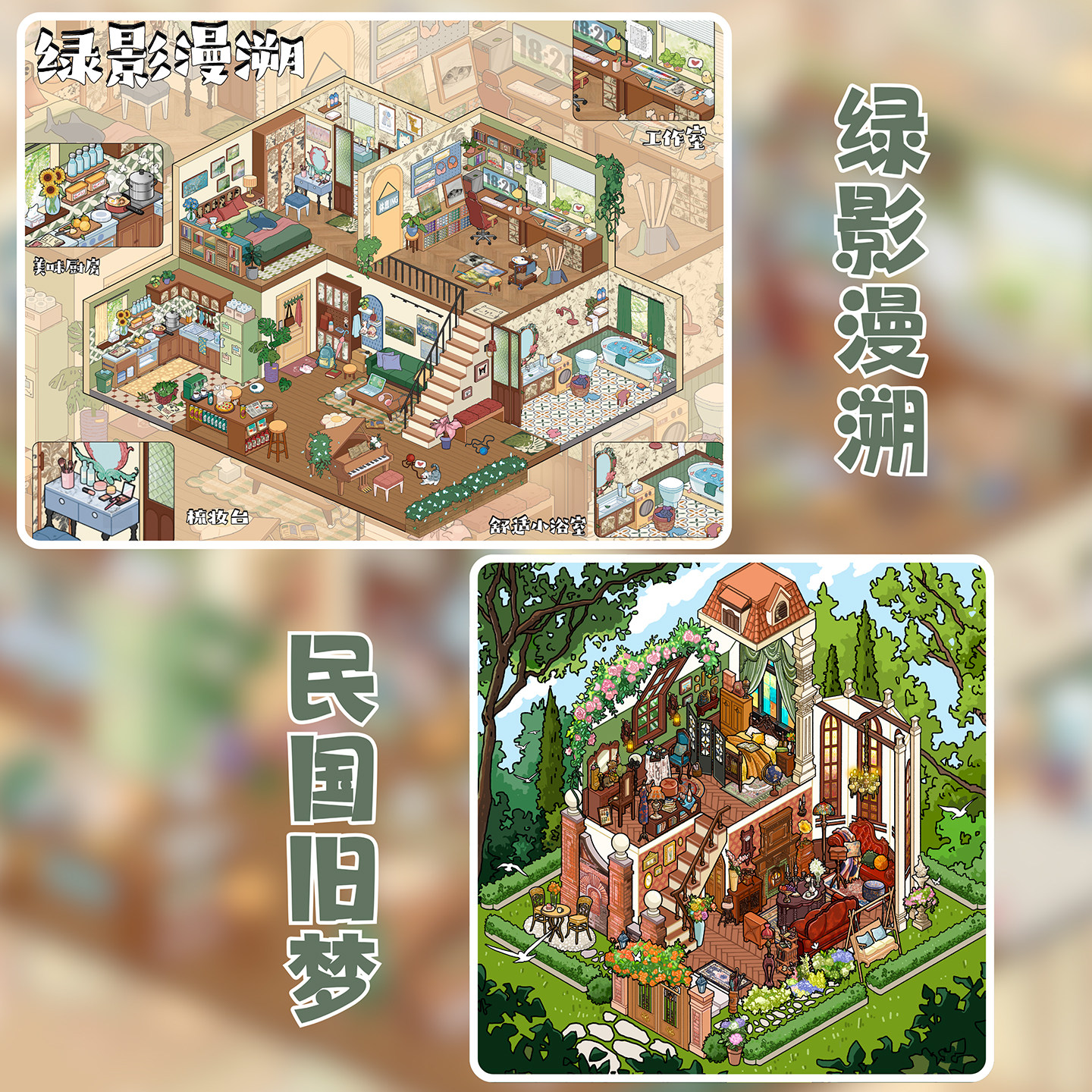 📚 绿影漫溯造景贴纸灵感捕梦阁6.0大号复古系列民国旧梦微缩场景合集本3d立体小屋贴画手工diy解压拼图玩具女孩