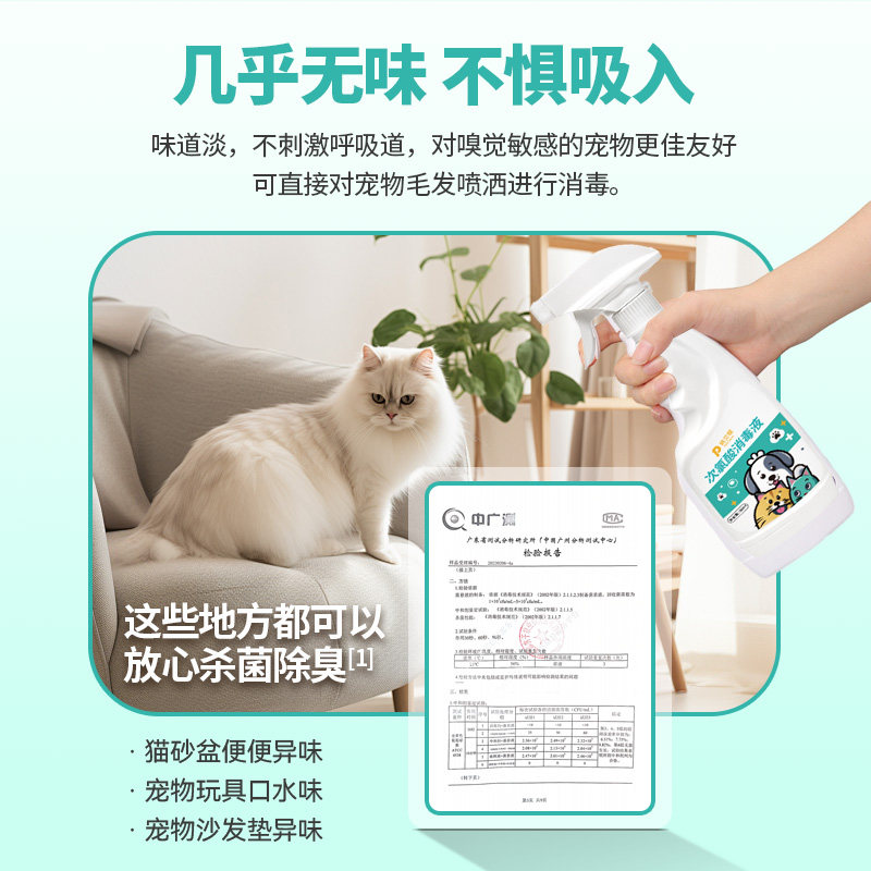 📚 次氯酸宠物消毒液猫咪专用狗狗杀菌去味喷雾猫藓犬瘟室内环境家用