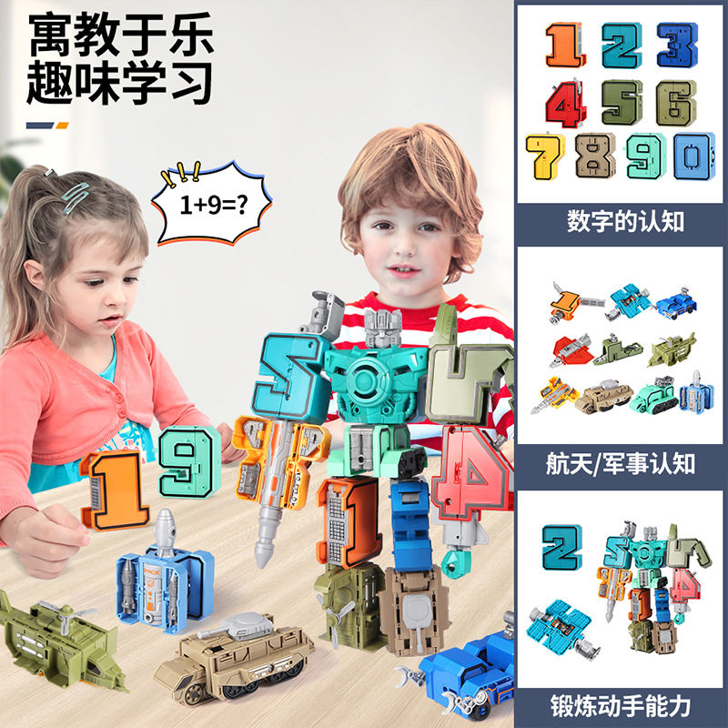 📚 数字变形玩具益智拼装合体机器人3-6岁儿童金刚机甲汽车孩