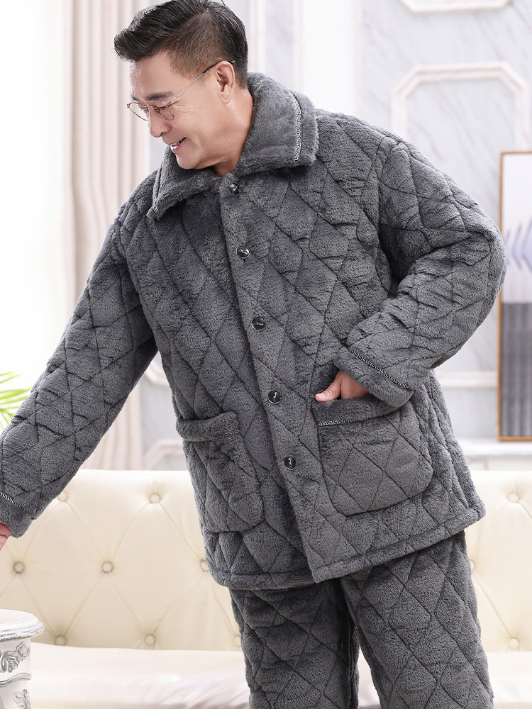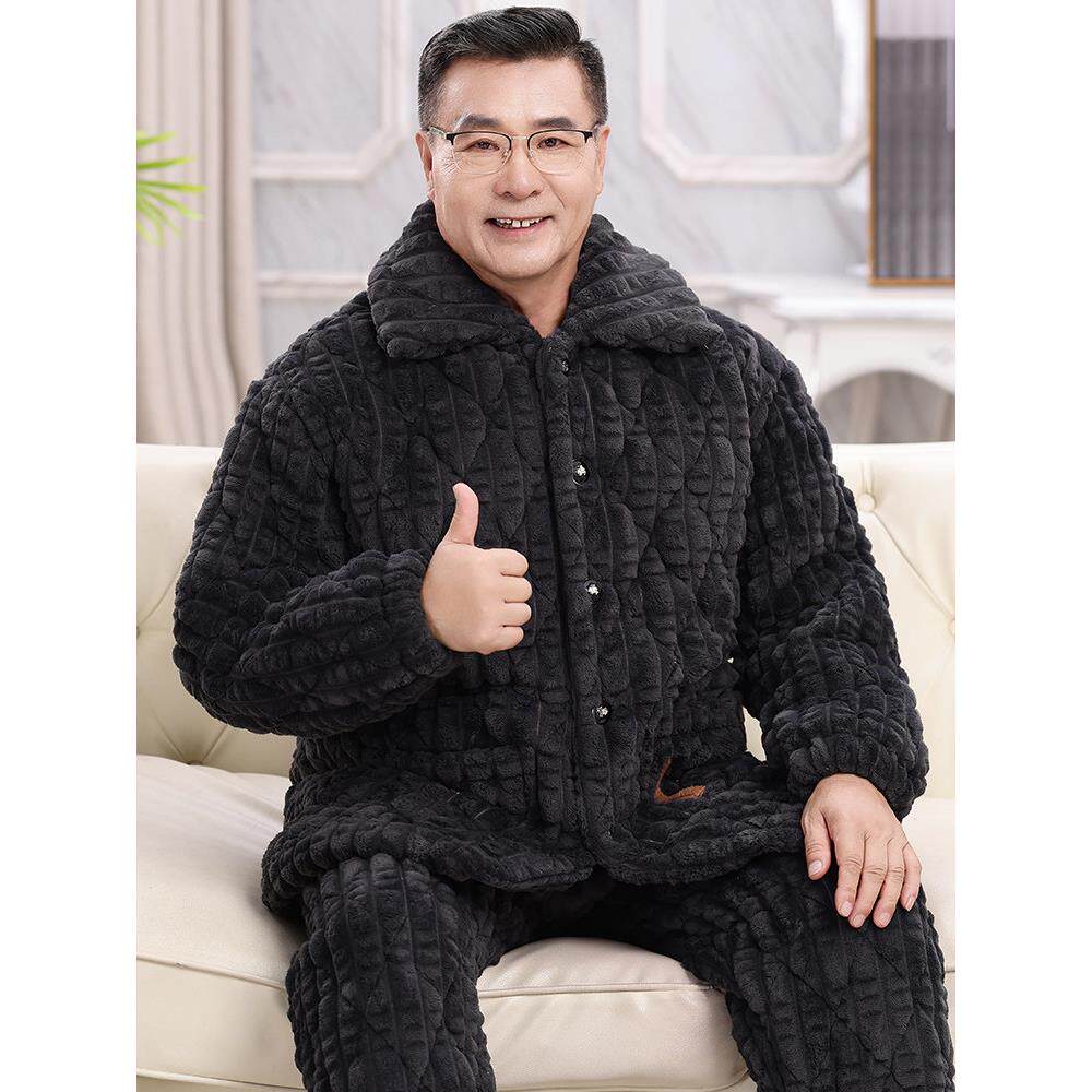 📚 冬季睡衣男棉绒加厚保暖中老年人父亲和祖父冬季珊瑚绒男棉绒冬装