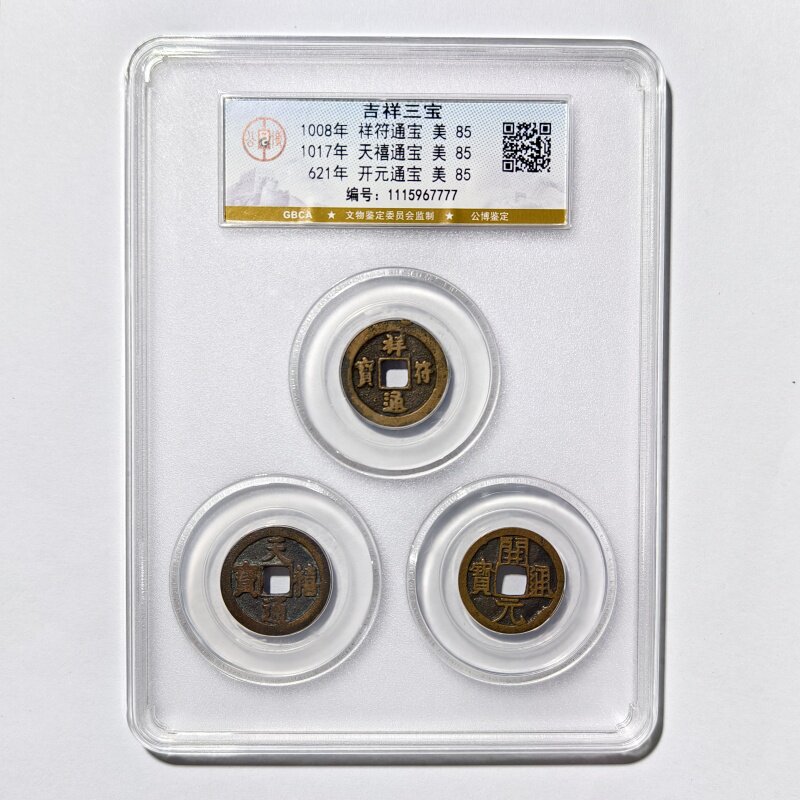 📚 公博美85评级双喜五福临门吉祥三宝祥符天禧开元通宝套装老铜钱币
