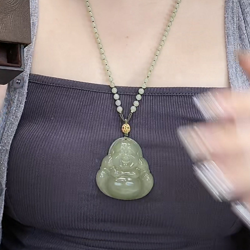 📚 毛衣链编绳玉石吊坠女生玉佛项链弥勒佛玉石大肚佛公笑佛礼物送妈