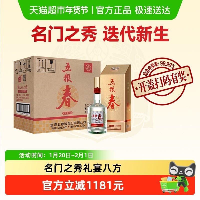 📚 五粮液股份 五粮春二代浓香型白酒52度500mL*6瓶整箱原箱送礼