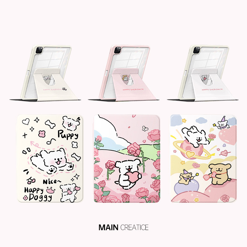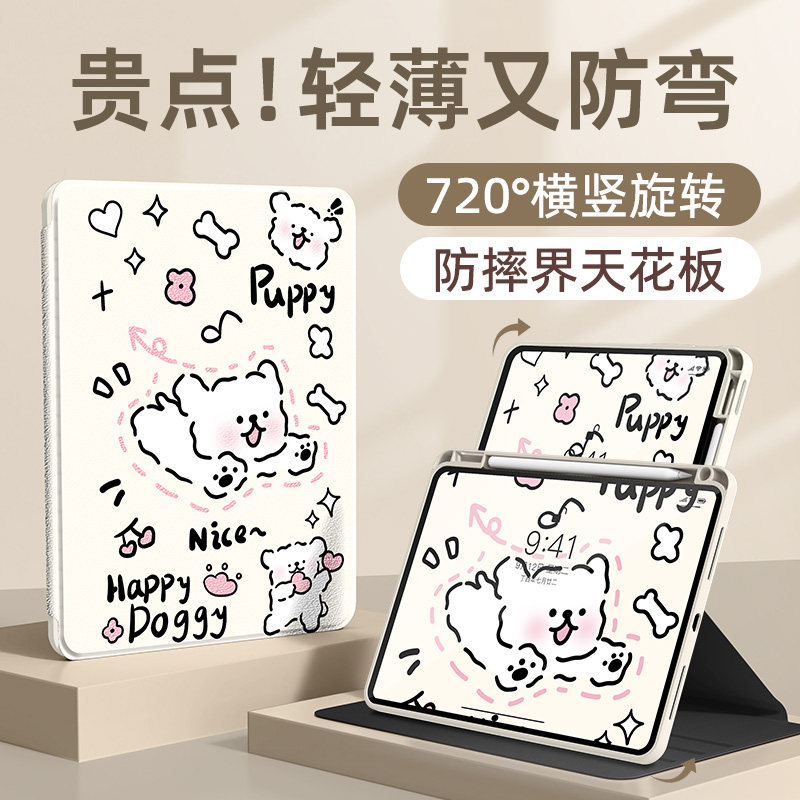 📚 适用三星s9fe平板保护壳galaxy带笔槽tab旋转a9+硅胶s8亚克力壳s7plus磁吸s7fe+防摔a8保护套s6lite可爱修狗