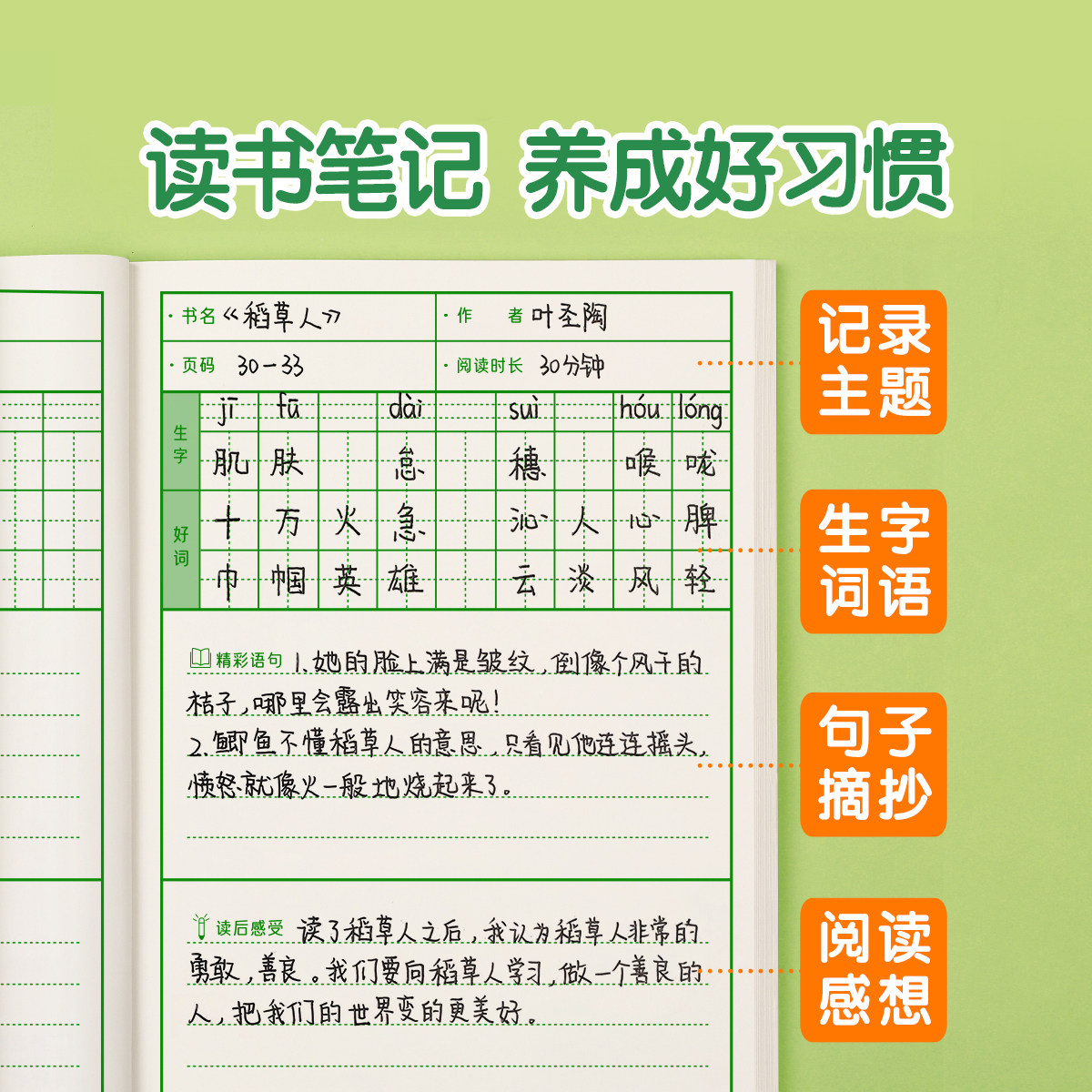 📚 读书笔记好词好句好段阅读记录卡笔记本A5专用本摘抄本小学生语文课外日积月累一年级二年级卡通记事本积累本