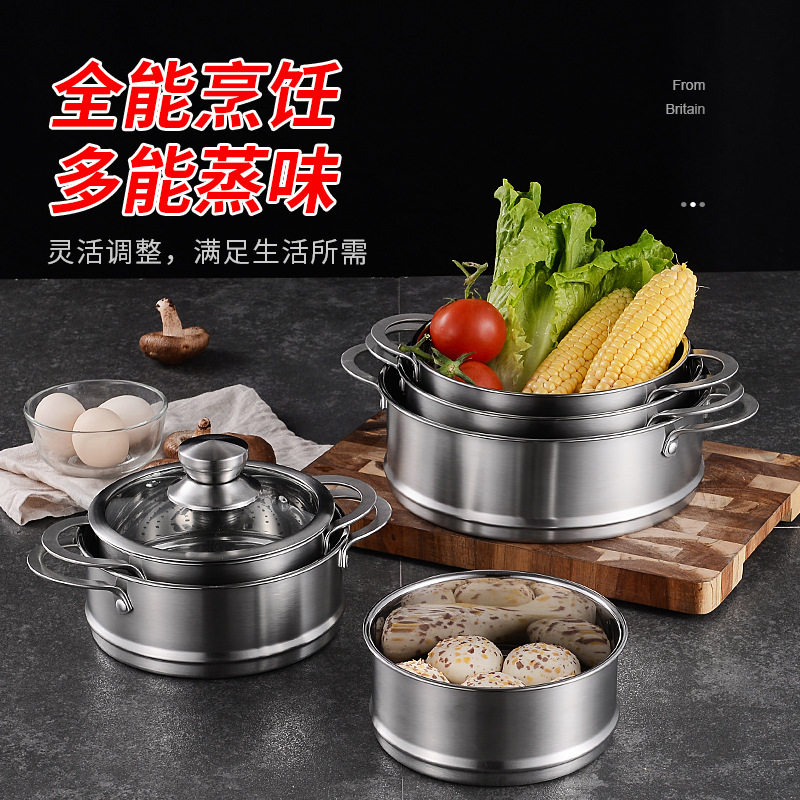 📚 304不锈钢蒸格带把手汤锅奶锅辅食锅配套蒸屉蒸笼电煮锅通用蒸格