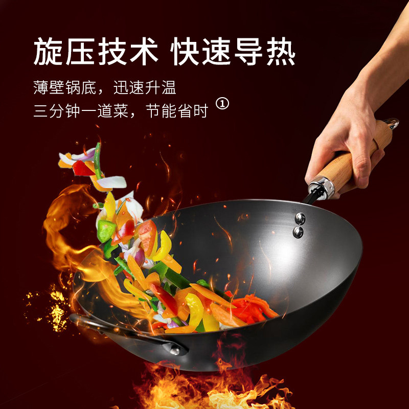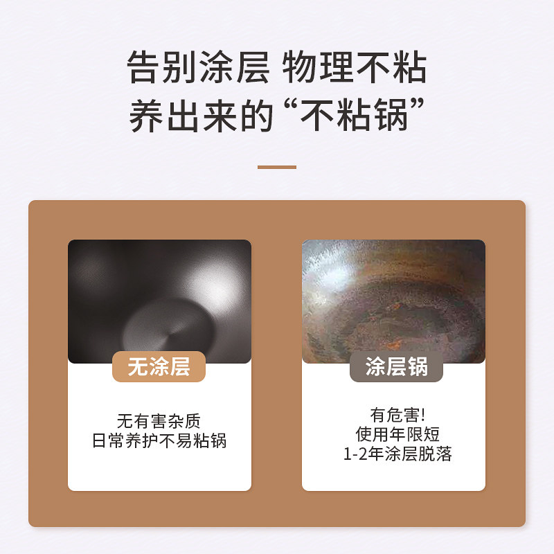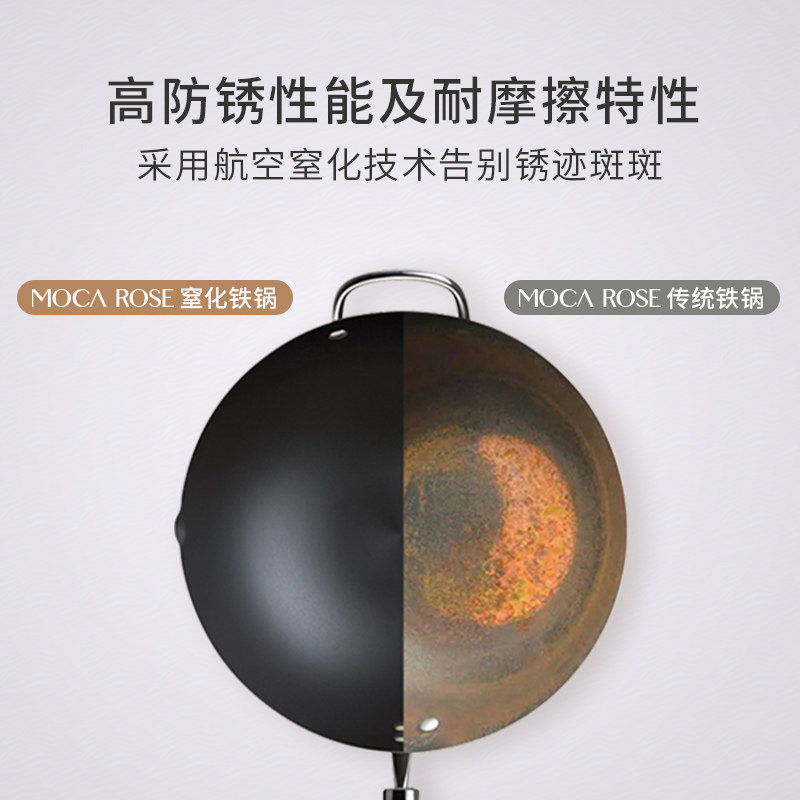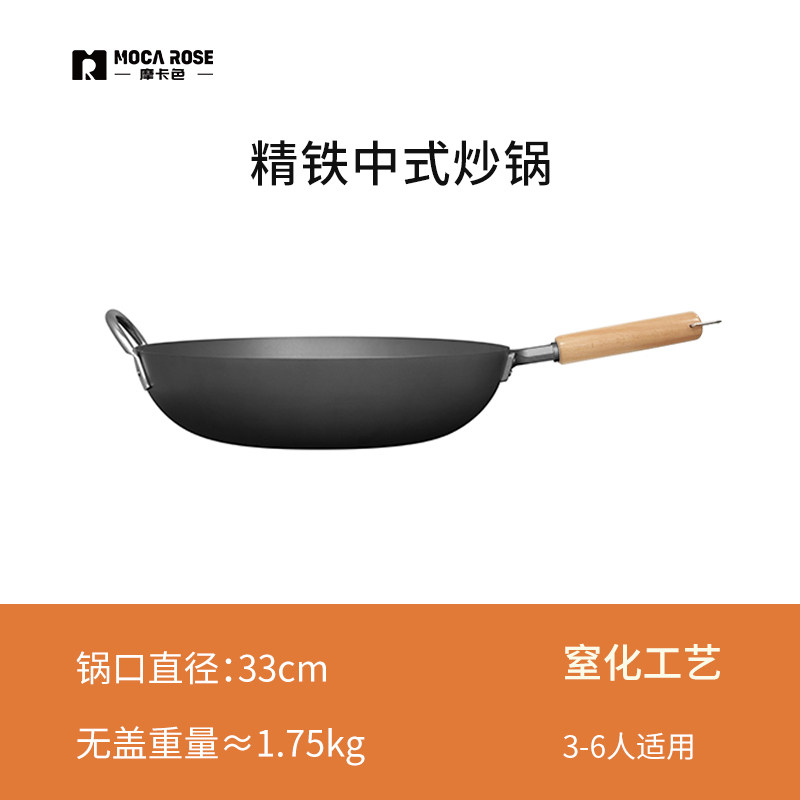 📚 摩卡色中式窒化炒菜锅家用无涂层平底不易粘电磁炉轻铁锅精铁炒锅