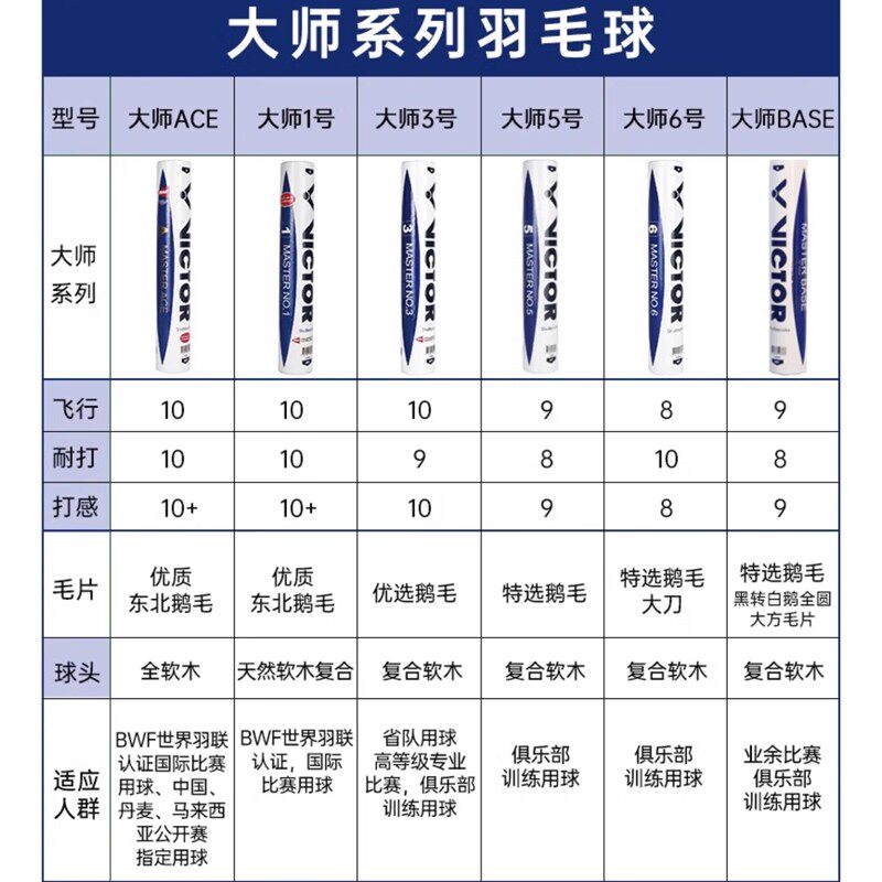 📚 VICTOR/威克多羽毛球大师1/5/6号胜利鹅毛球耐打飞行稳定大师ACE