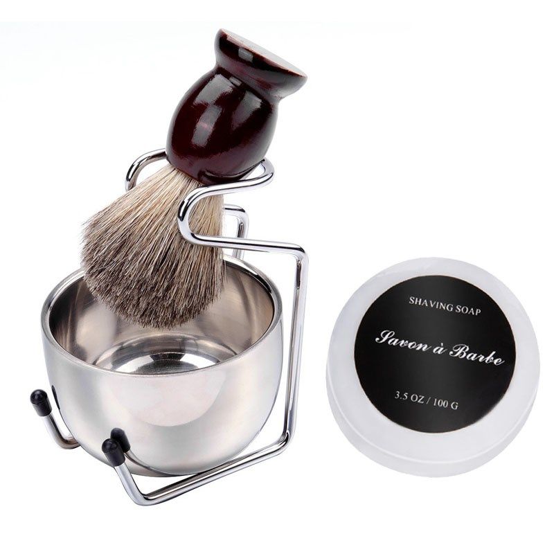 📚 剃须皂套装纯獾毛修面刮胡刷修面全套工具手动打泡沫碗起泡剃须刷