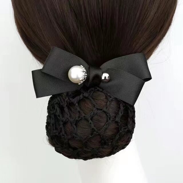 📚 头花职业护士发网蝴蝶结银行空姐酒店服务员发夹工作盘发网兜珍珠