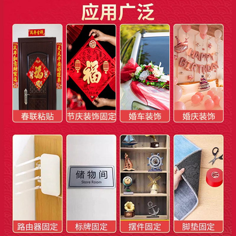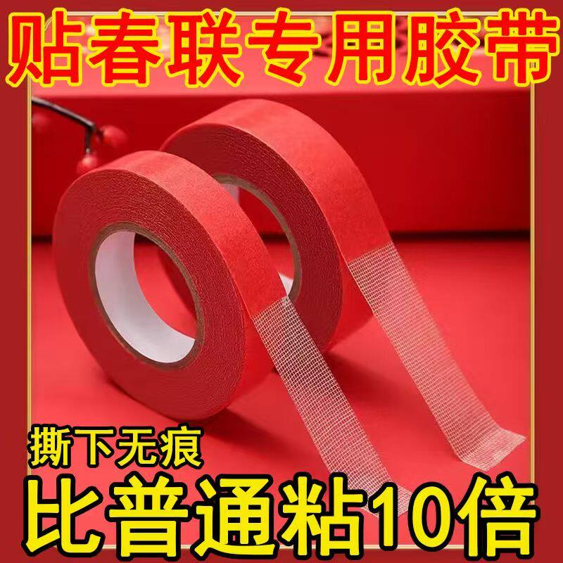 📚 贴春联对联双面胶带红色网格布基双面无痕胶布婚庆婚房装饰高粘性