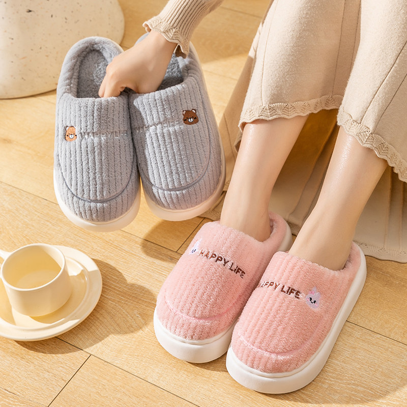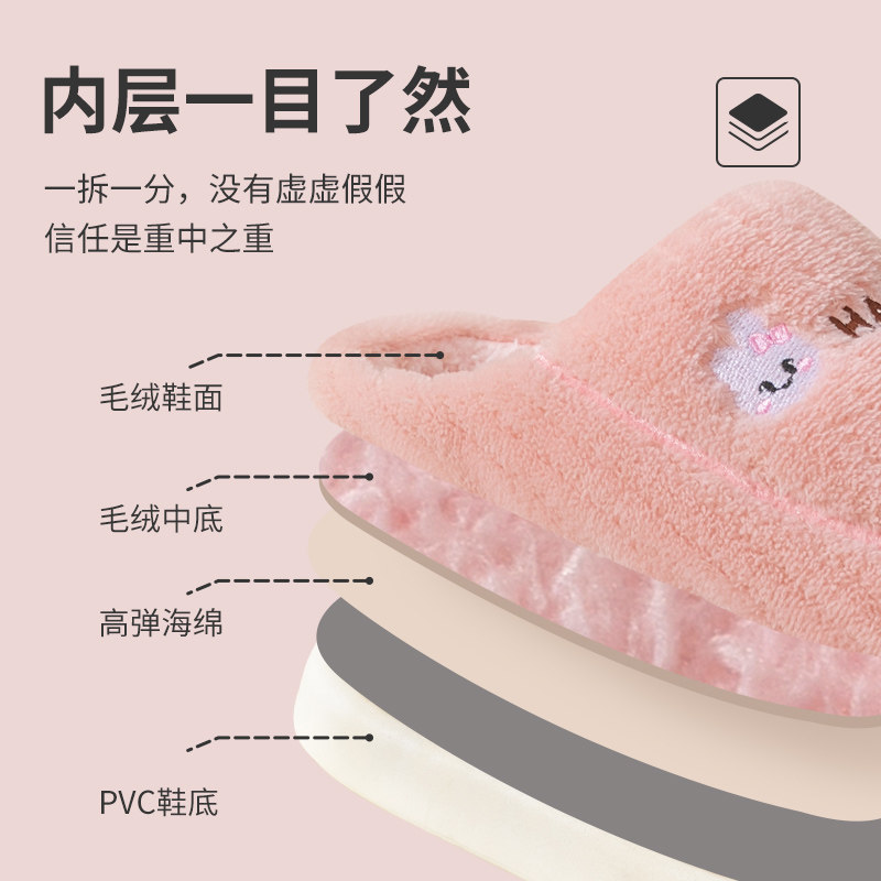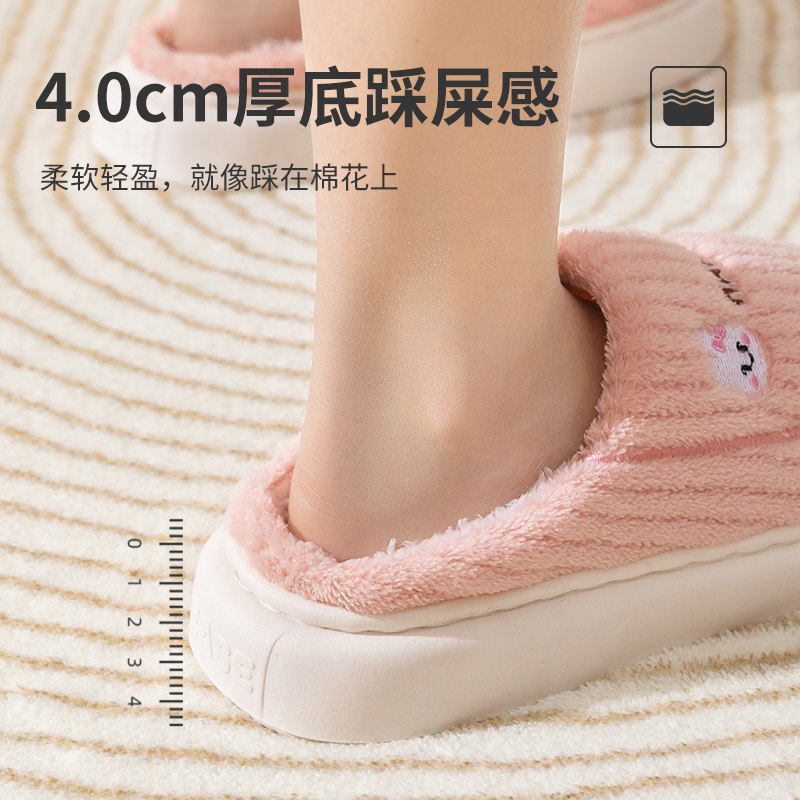 📚 买一送一棉拖鞋女士冬季情侣室内家居家用防滑保暖毛绒厚底拖鞋男