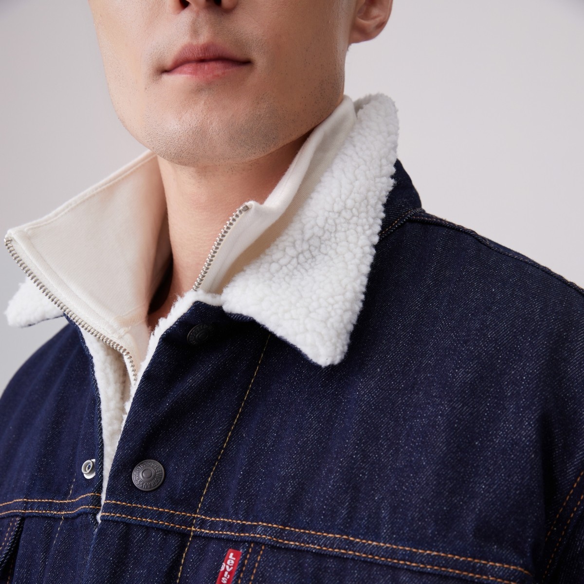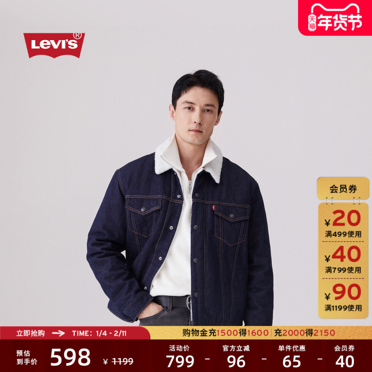 📚 Levi's李维斯秋季情侣美式复古哈灵顿风仿羊羔绒棉服牛仔厚外套
