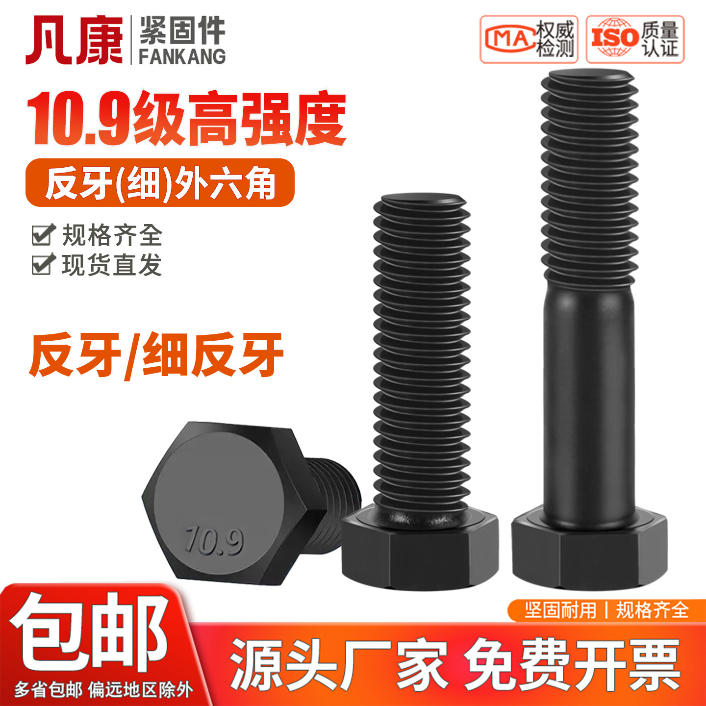 📚 反牙外六角10.9级高强度螺丝螺栓反细牙螺杆M8M10M12M14M16M18M20