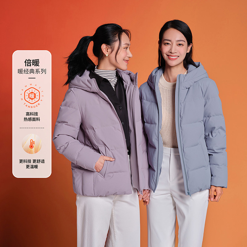 📚 坦博尔中老年羽绒服女短款连帽妈妈装大码宽松舒适保暖外套冬