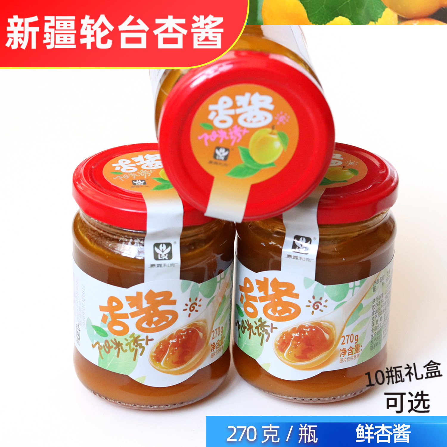📚 杏酱新疆轮台特产酸甜开胃新鲜小白杏子果酱甜点270克瓶装新日期