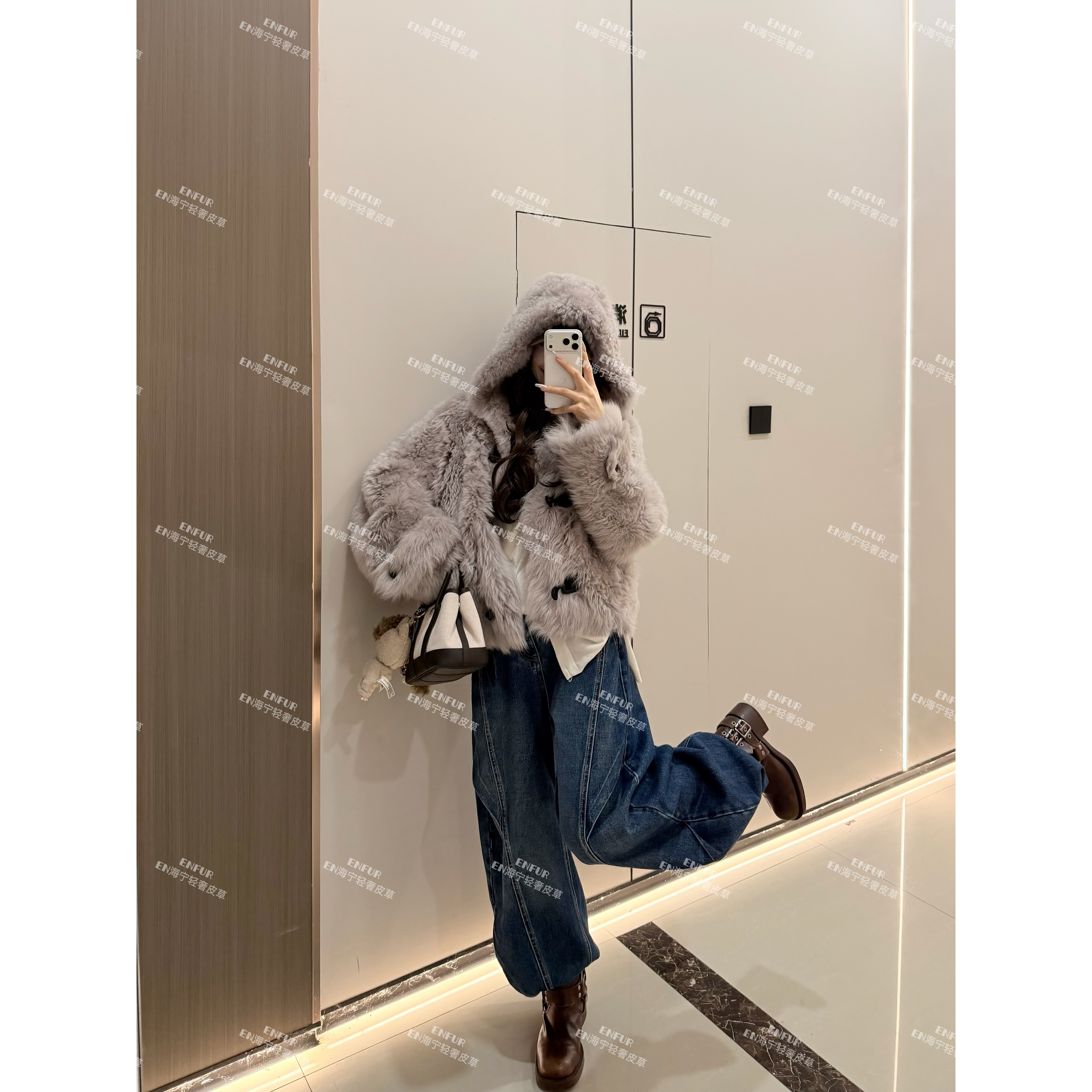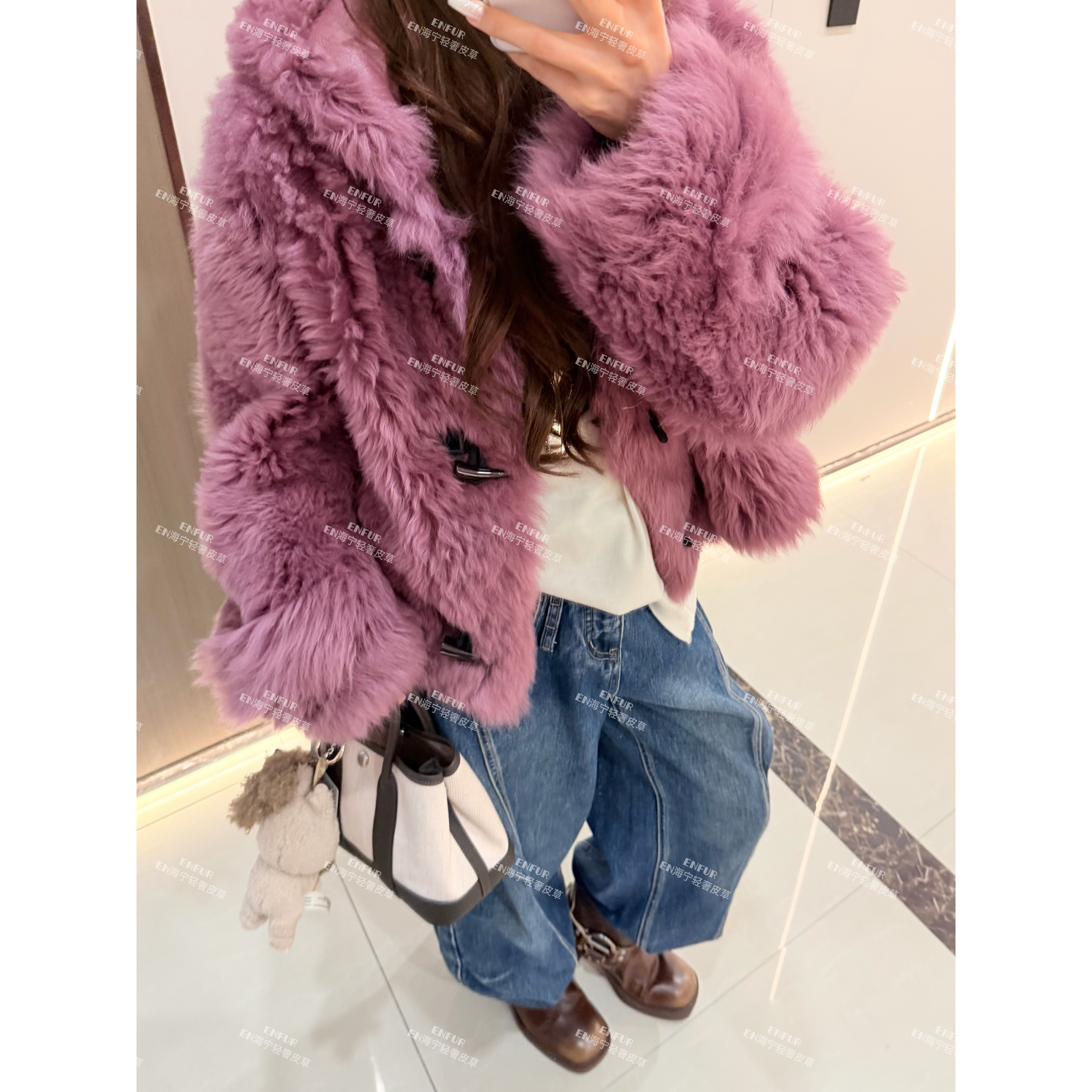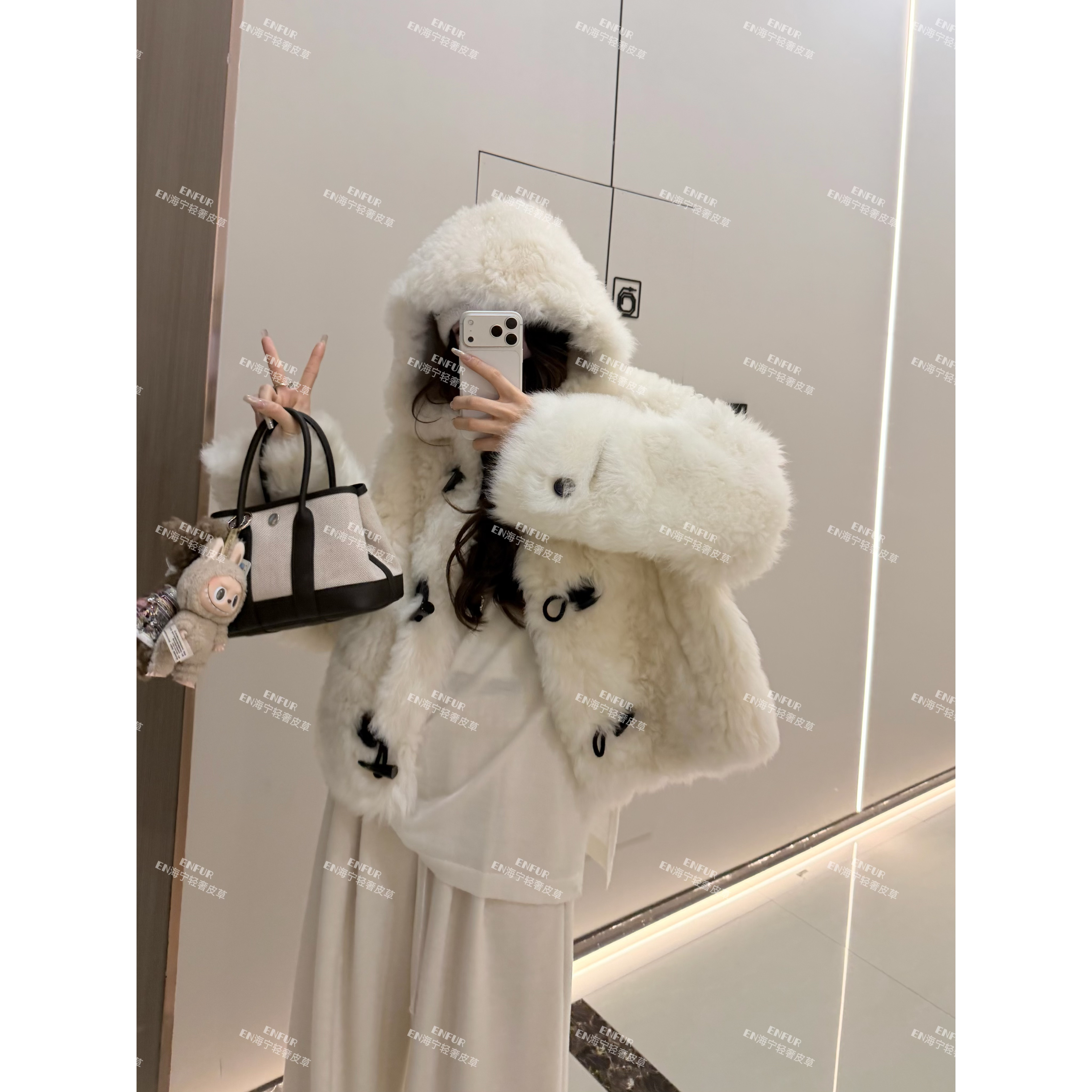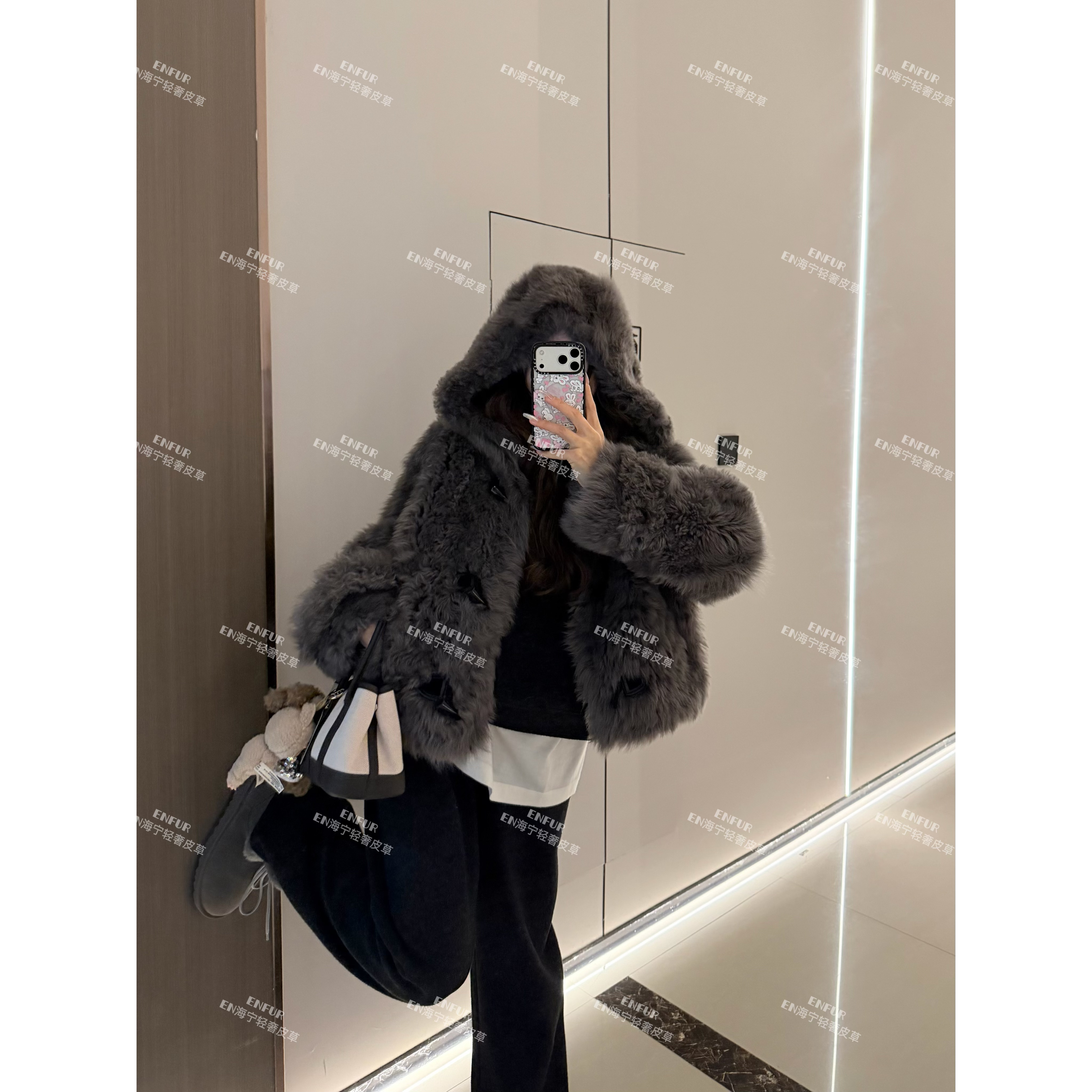 📚 ENFUR | 柔绒暖暖 连帽牛角扣托卡皮毛一体皮草外套 GG78798