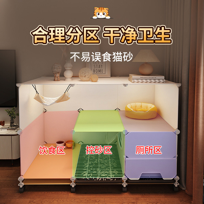 📚 猫笼子家用室内猫砂盆厕所一体猫窝一室一厅一卫小户型养猫咪专用
