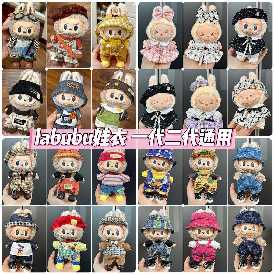 📚 labubu坐坐派对娃衣一二三代盲盒用马卡龙娃衣拉布布衣服毛绒搪胶