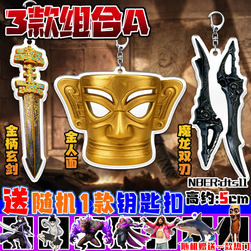 📚 和平精英古墓迷途钥匙扣金人面金柄玄剑挂件游戏周边学生背包挂饰
