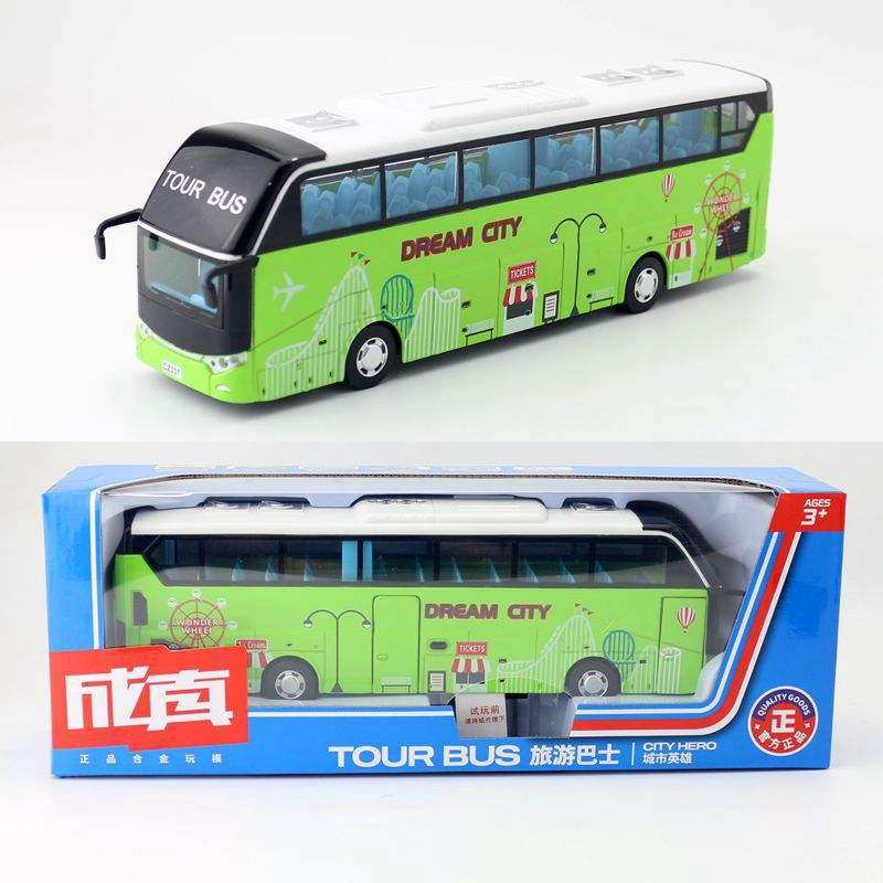 📚 新款 成真合金汽车玩具模型城市豪华客车巴士声光开门盒装