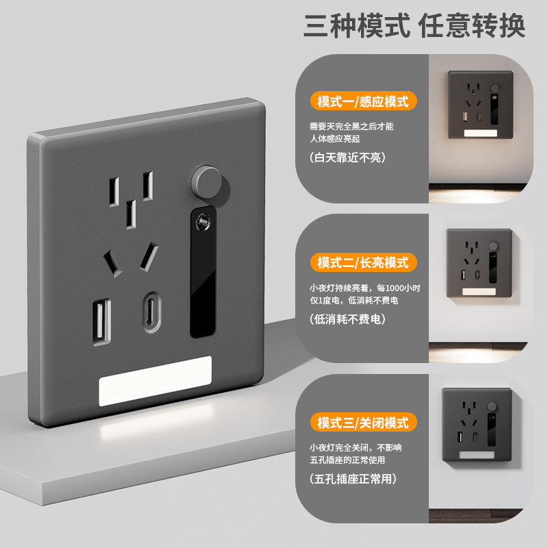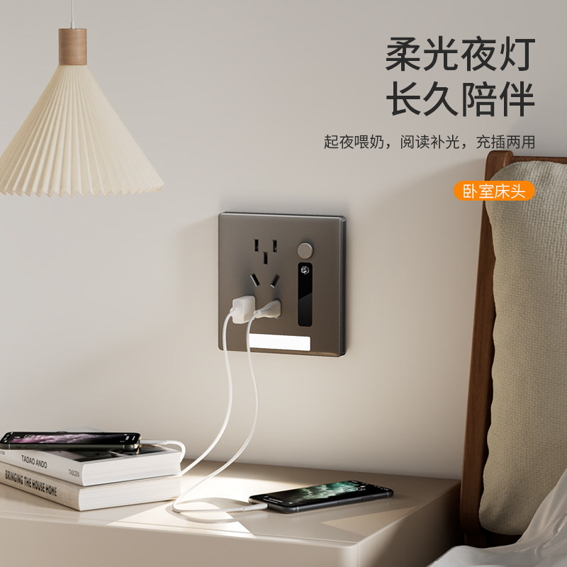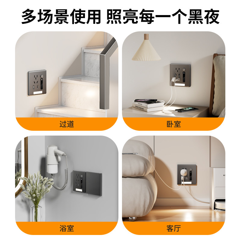 📚 五孔插座带人体感应地脚灯7七孔86型嵌入式楼梯过道床头led小夜灯