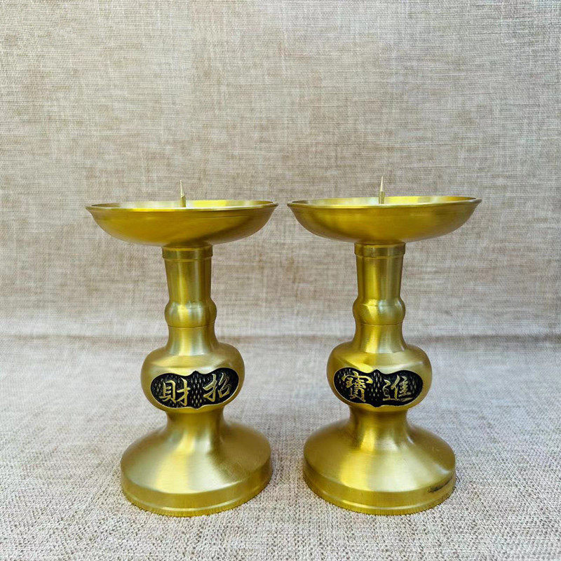 📚 纯铜烛台摆件家用蜡烛台座铜蜡台坐高档一对大号香炉一套佛具用品