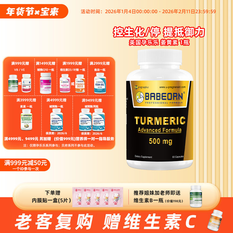 📚 babeorn孕乐乐姜黄素大龄女性备孕备怀抗氧炎护关节胎不稳NK