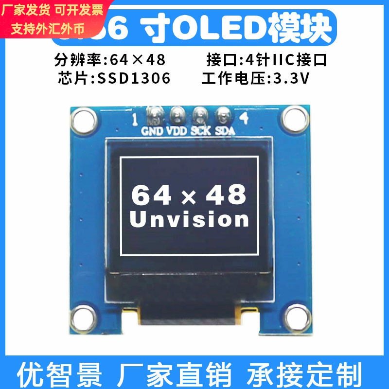 📚 0.66寸OLED显示屏模块6848oled液晶屏SSD1306小尺寸全视角单色4针