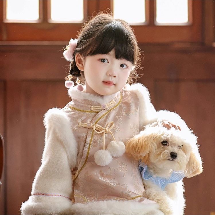 📚 汉服女童冬季2025新款儿童新中式国风加绒裤子套装女孩过年新年装