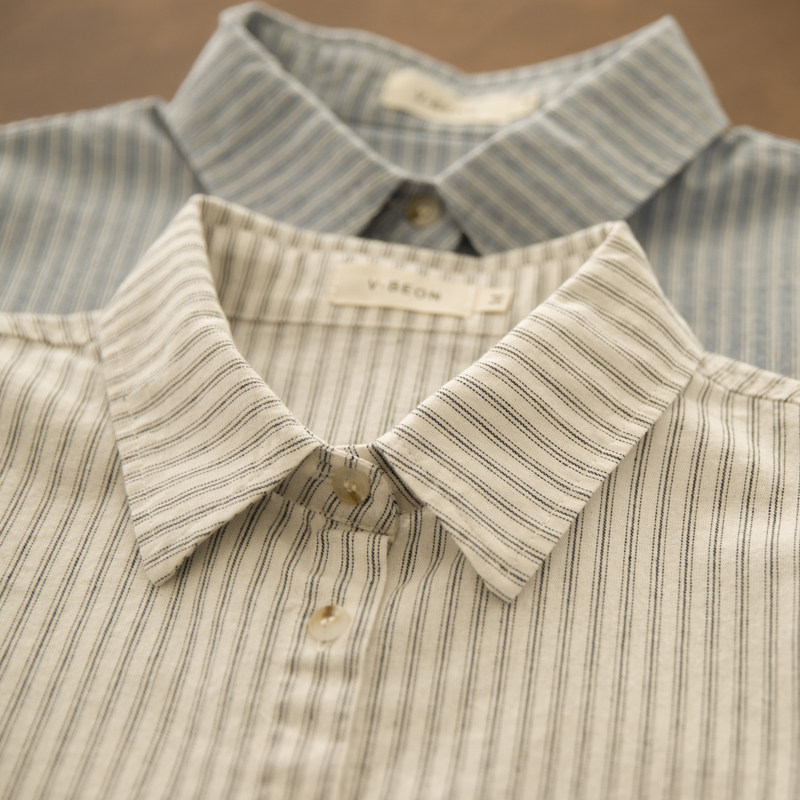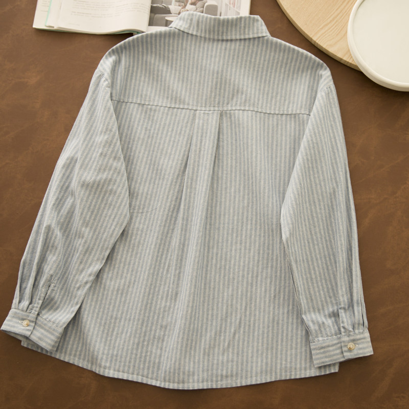 📚 叹月礼 秋新日系学生原宿风宽松显瘦纯棉翻领长袖条纹衬衣薄外套