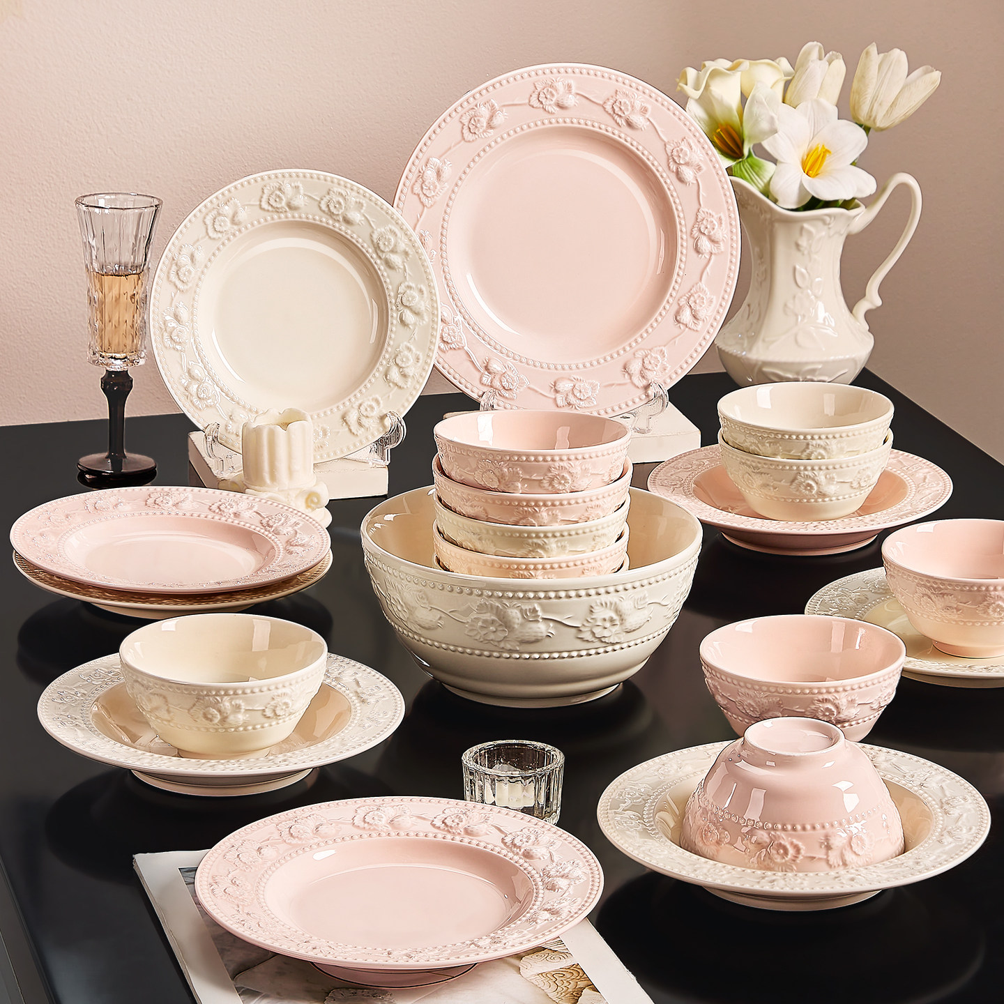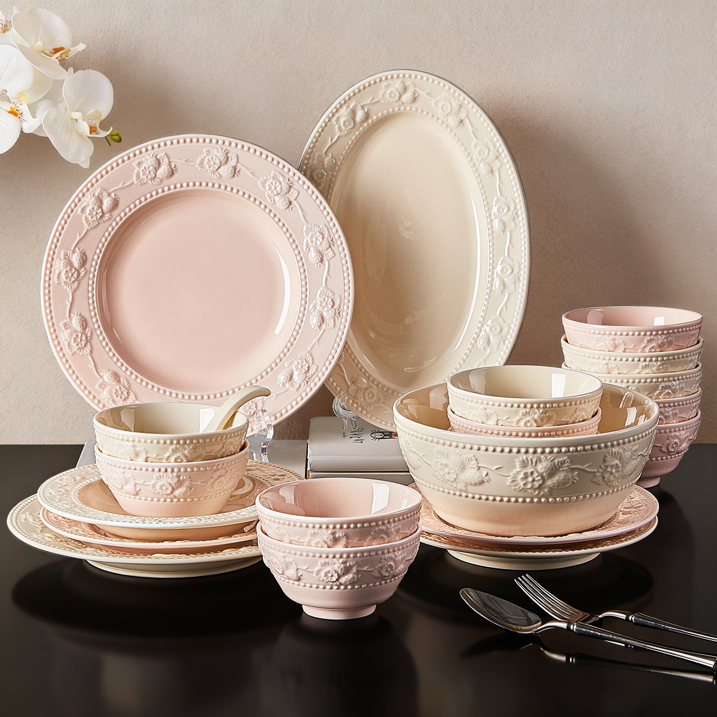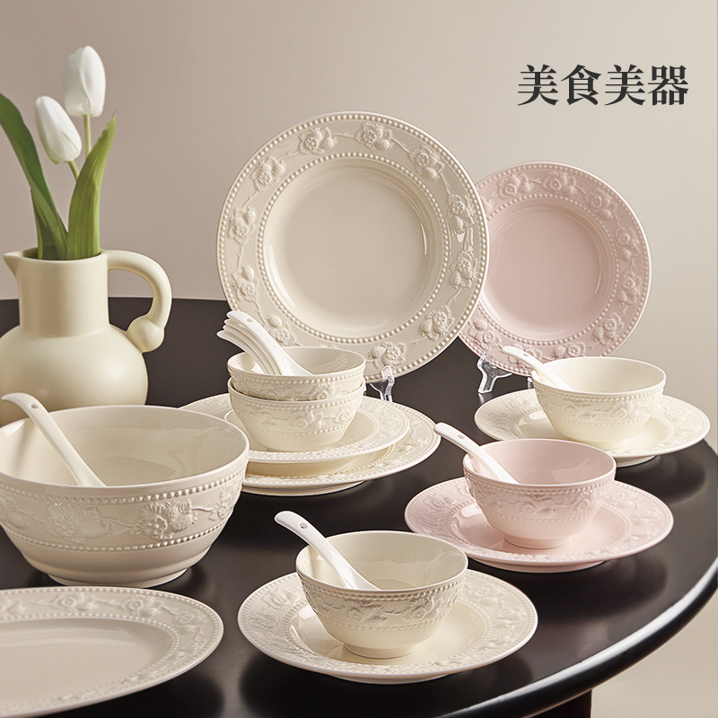 📚 法式餐具套装家用2026新款高颜值碗碟套装碗盘子乔迁新婚礼物碗具