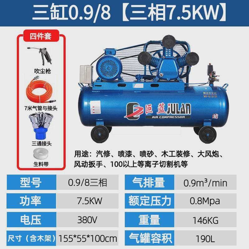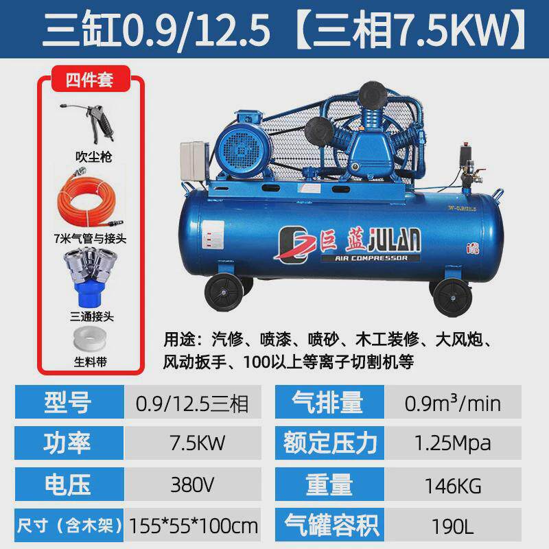 📚 皮带式活塞空压机大型380v工业级高压充气泵汽修喷漆木工空压机