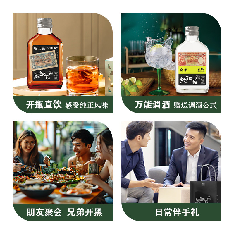 📚 高升纹银百两40度100ml便携威士忌白兰地朗姆酒伏特加金酒小烈酒