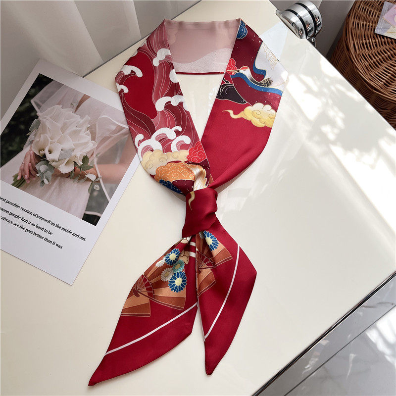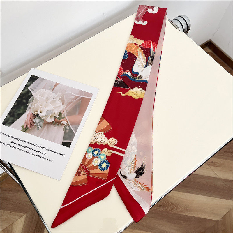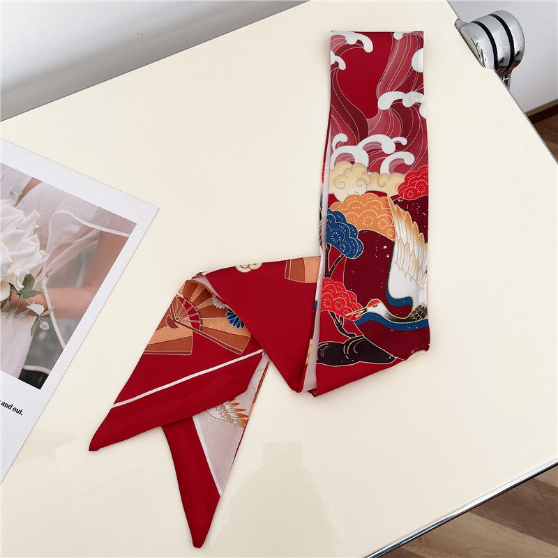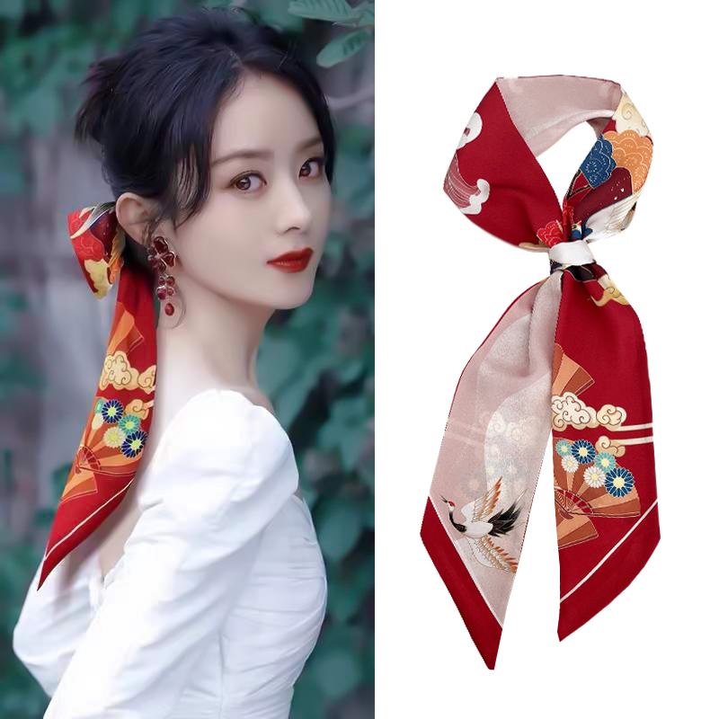 📚 中国风细窄长条红色女装小丝巾发带丝带扎发绑发夏新年春秋饰领巾