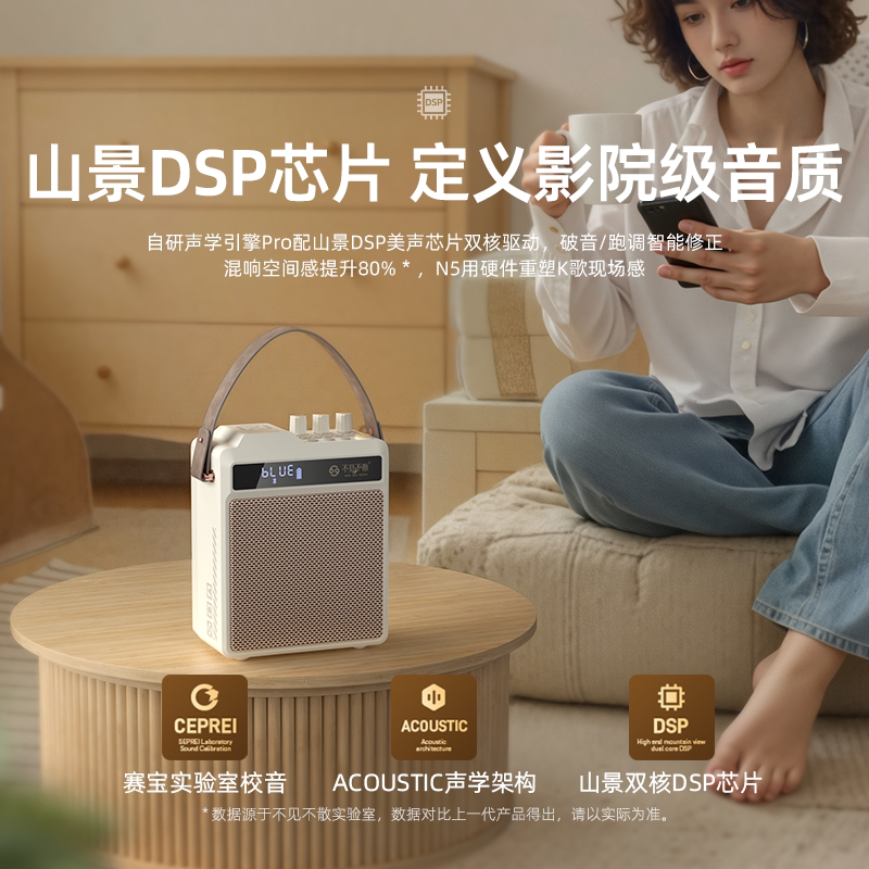 📚 不见不散N5高音质家庭K歌音箱麦克风一体多功能无线小型蓝牙音响