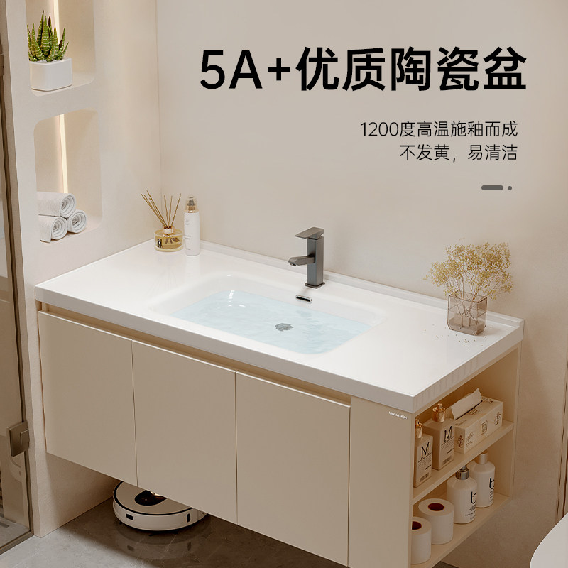 📚 帝王洁具陶瓷一体盆法式奶油风浴室柜洗脸盆智能镜柜收纳除雾镜柜