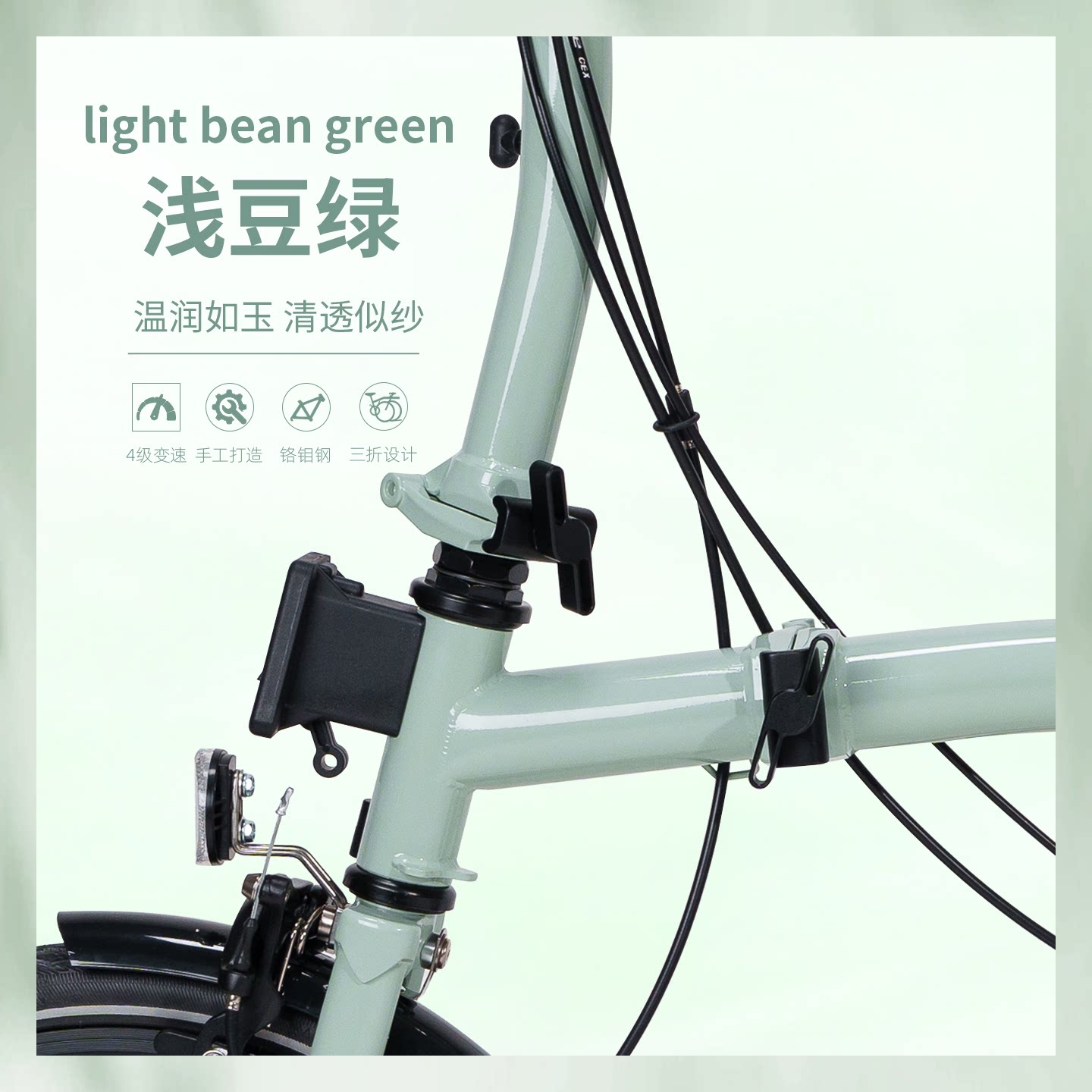 📚 CRANSTON浅豆绿P4三折叠自行车成人超轻便携城市复古小布16寸单车
