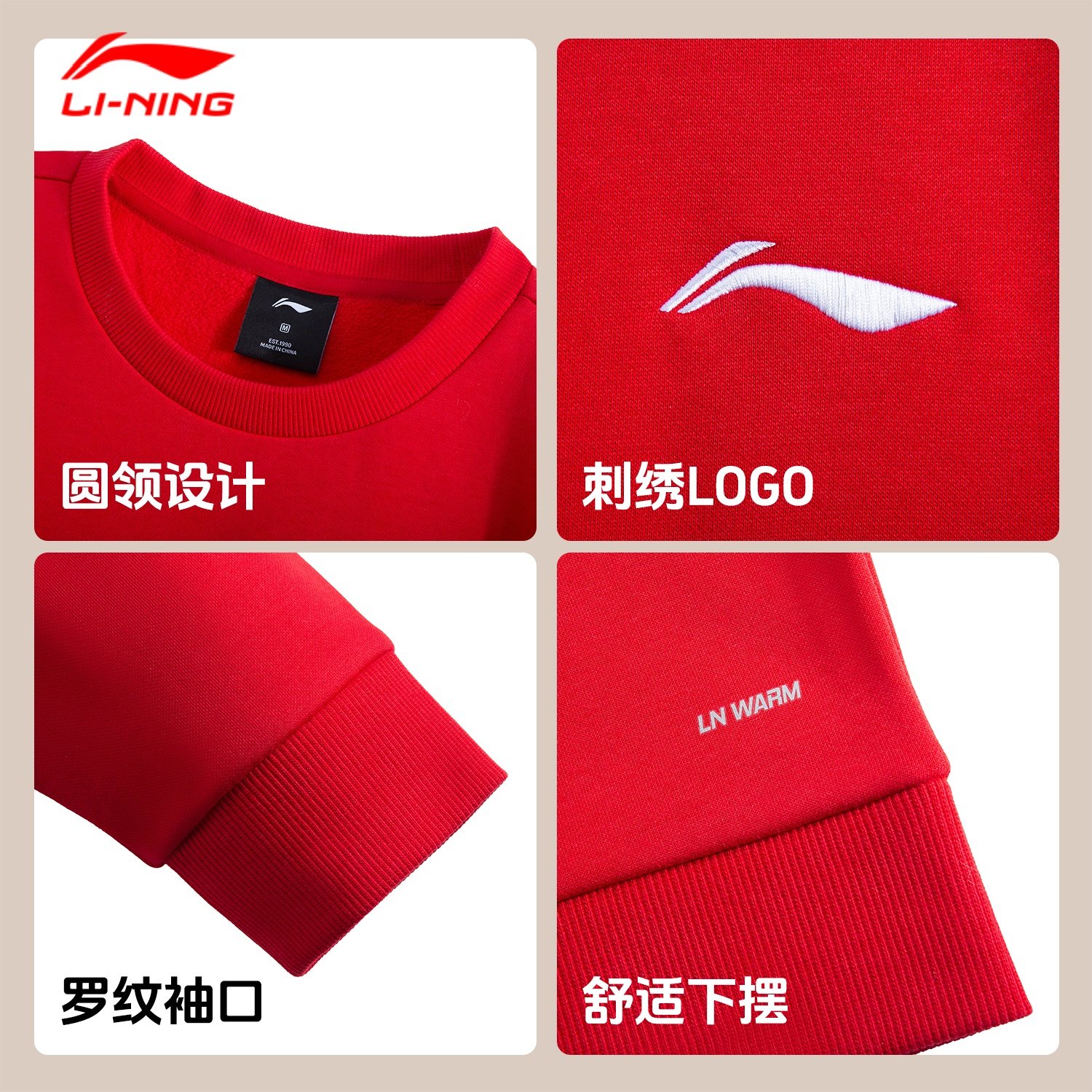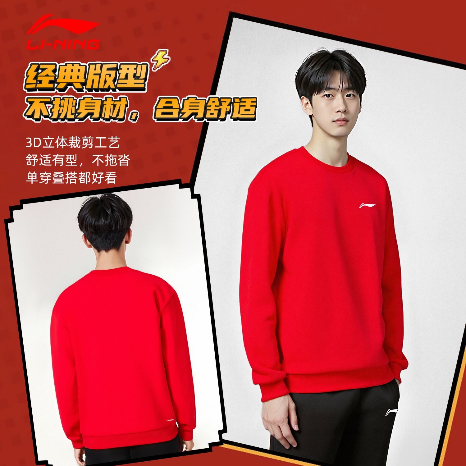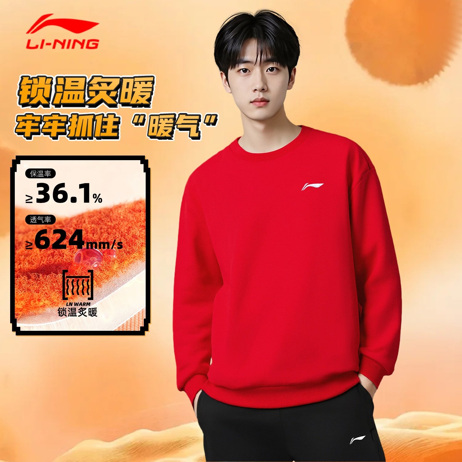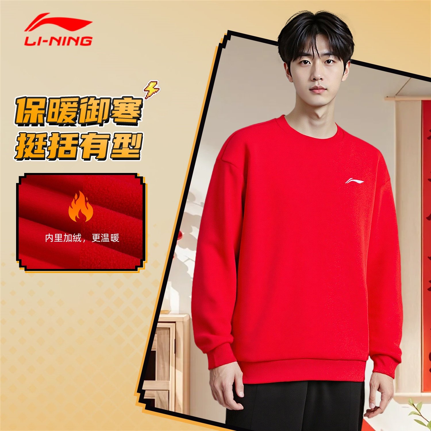 📚 李宁运动套装男款2026春季上新新年红加绒保暖卫衣卫裤时尚两件套