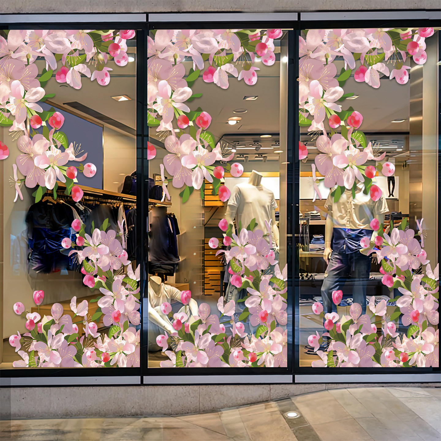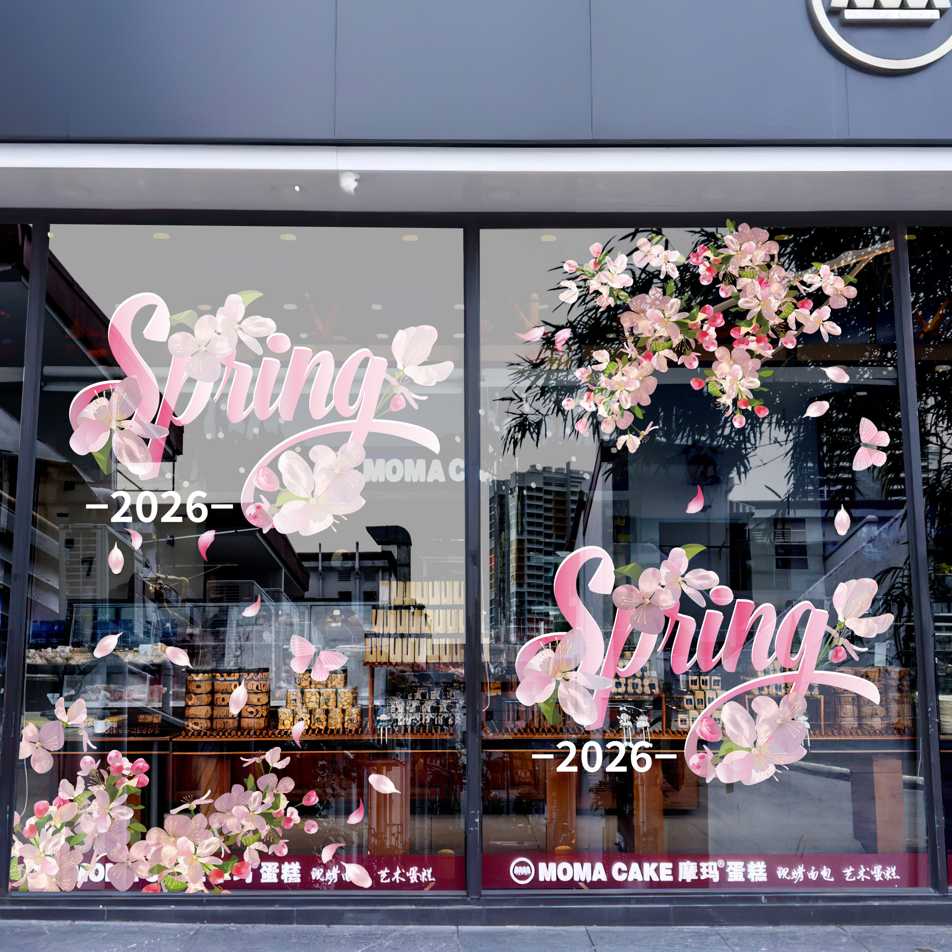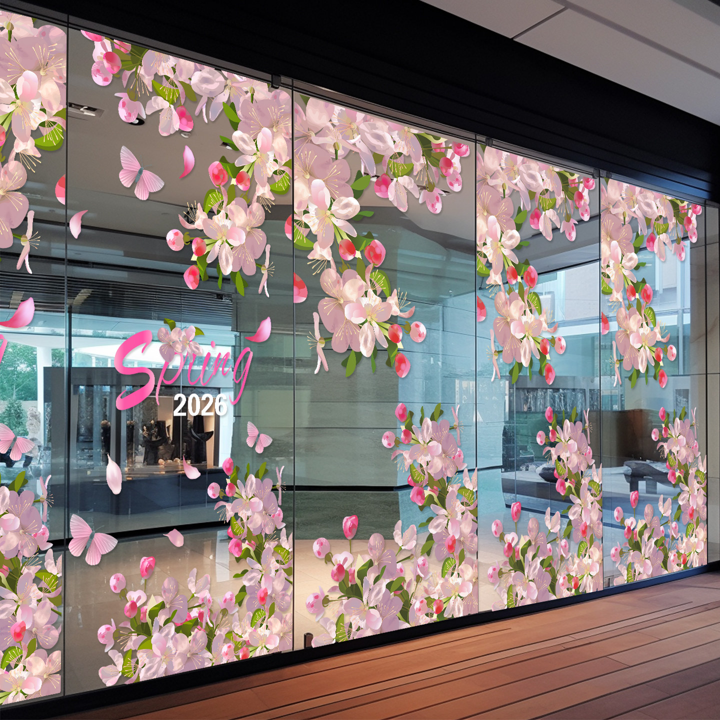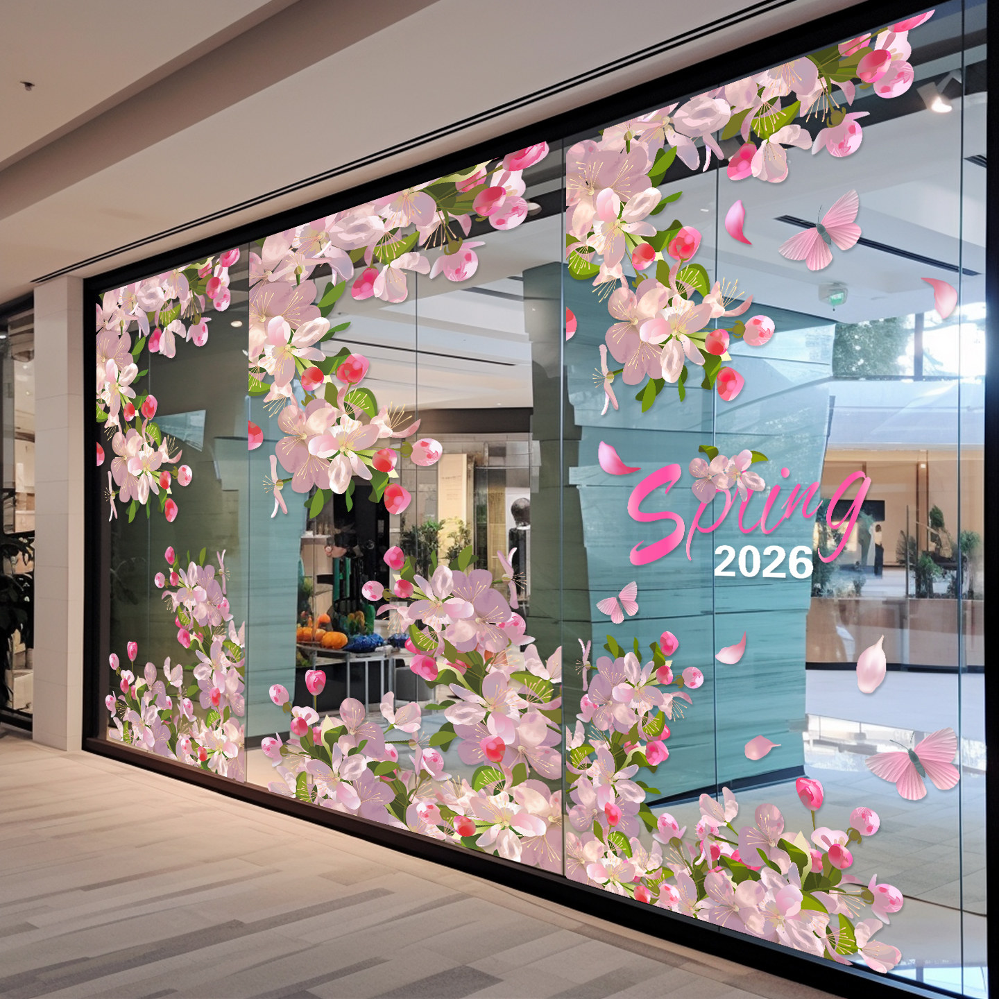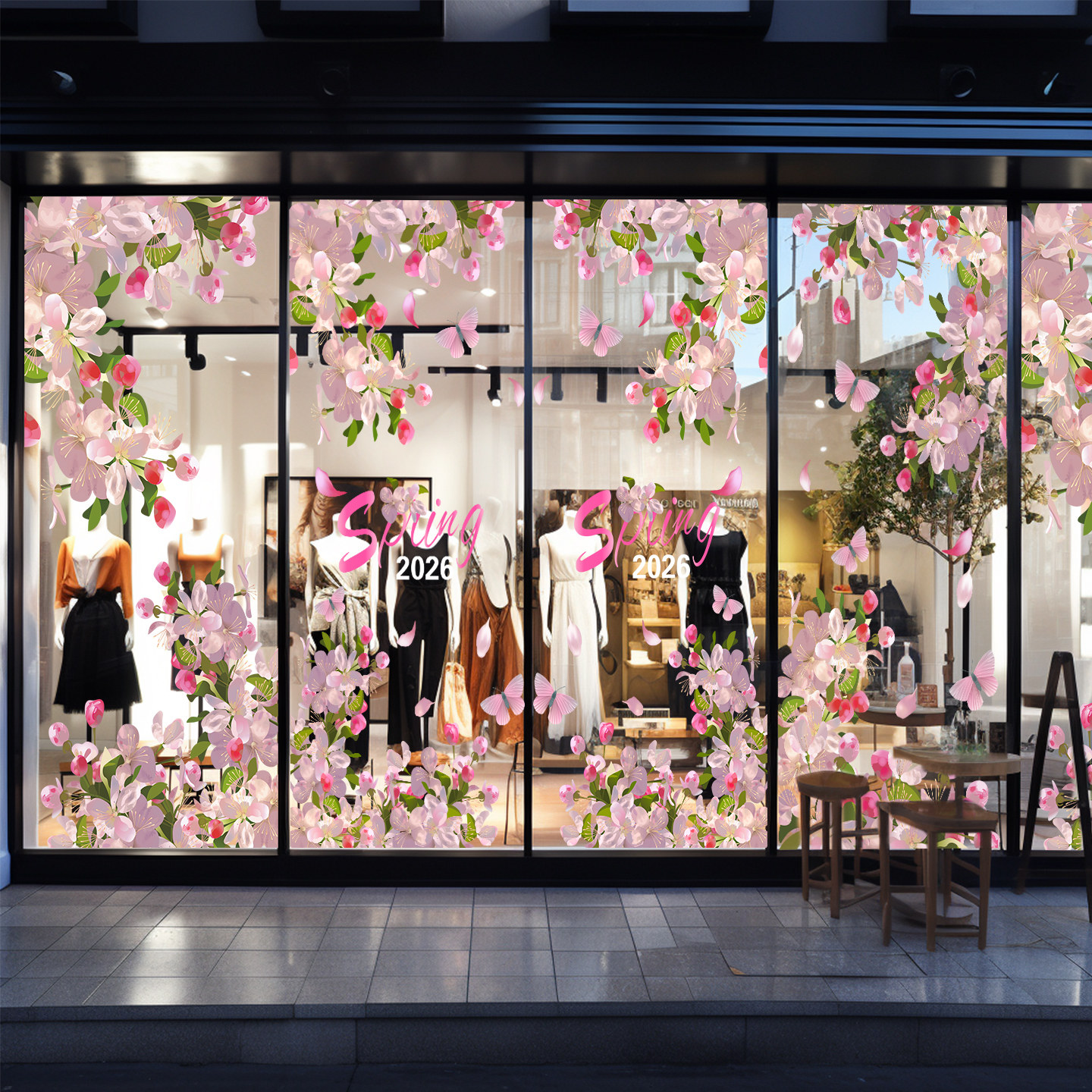 📚 新品上市装饰布置玻璃贴2026春季上新商场服装氛围樱花静电贴