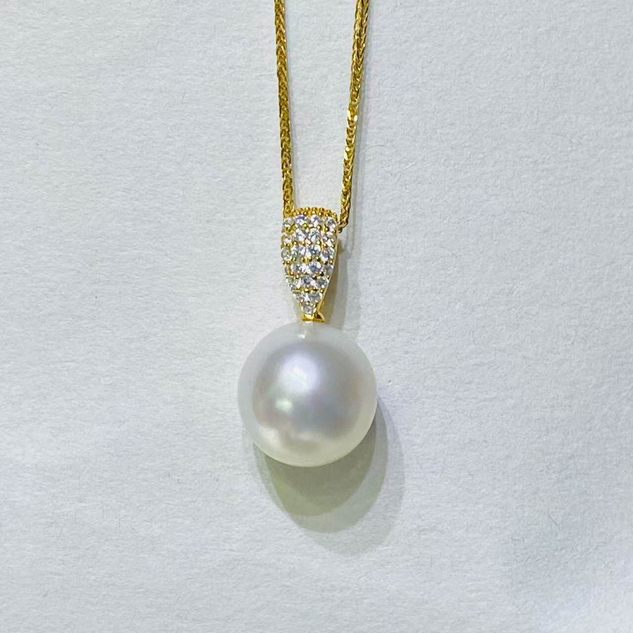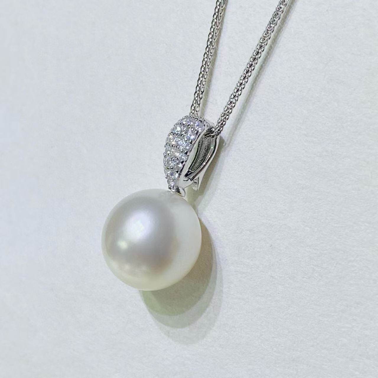 📚 DIY珍珠配件 S925 纯银吊坠空托 万能扣金色银色项链坠 10-14mm圆