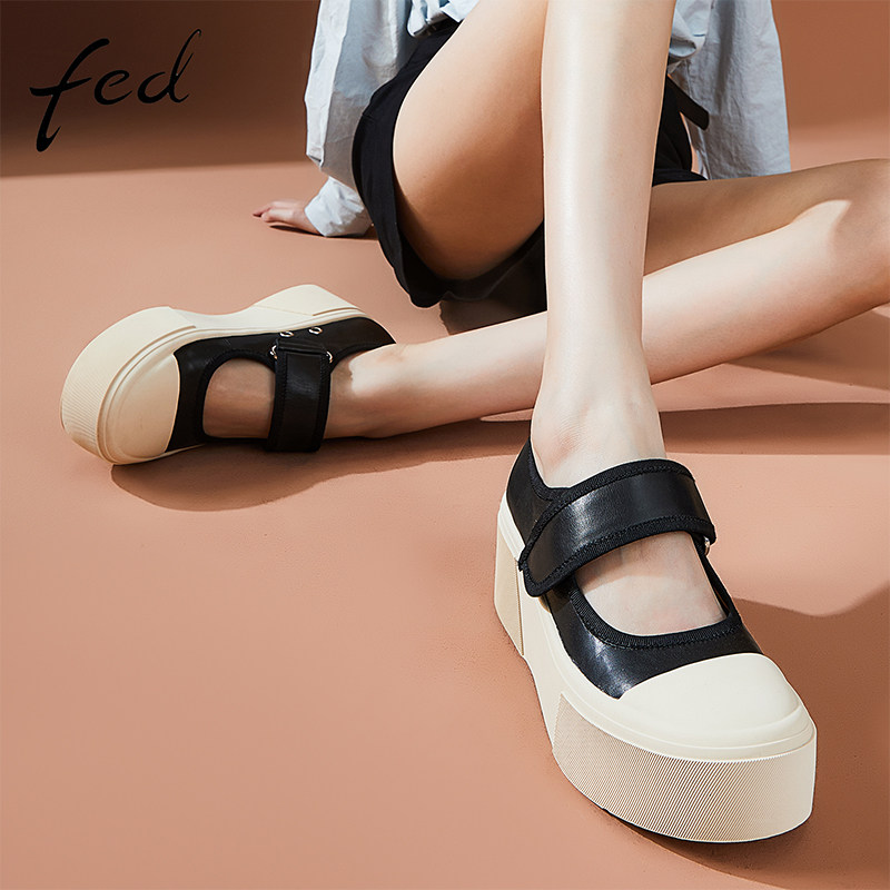 📚 【李浩菲同款】fed休闲单鞋女鞋魔术贴玛丽珍鞋厚底大头鞋女YA057