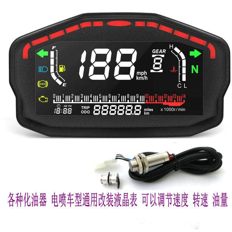 📚 爆款骑士摩托裸把车改装彩屏液晶仪表时转速可调1-6档水温油量表
