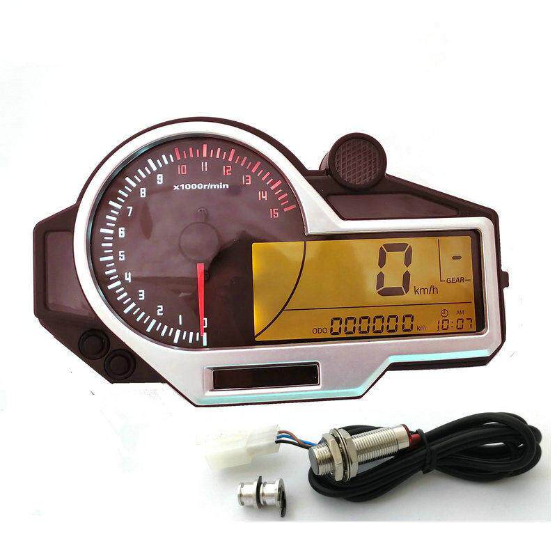 📚 摩托 托裸把车改装液晶仪表时速转速可调N1-6档水温油量表自检一