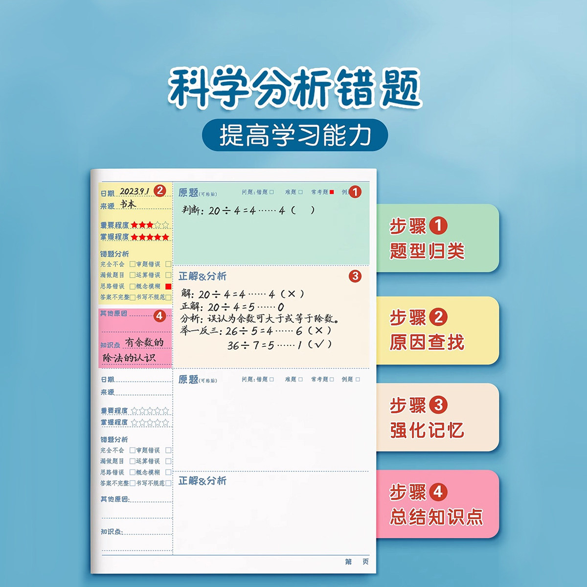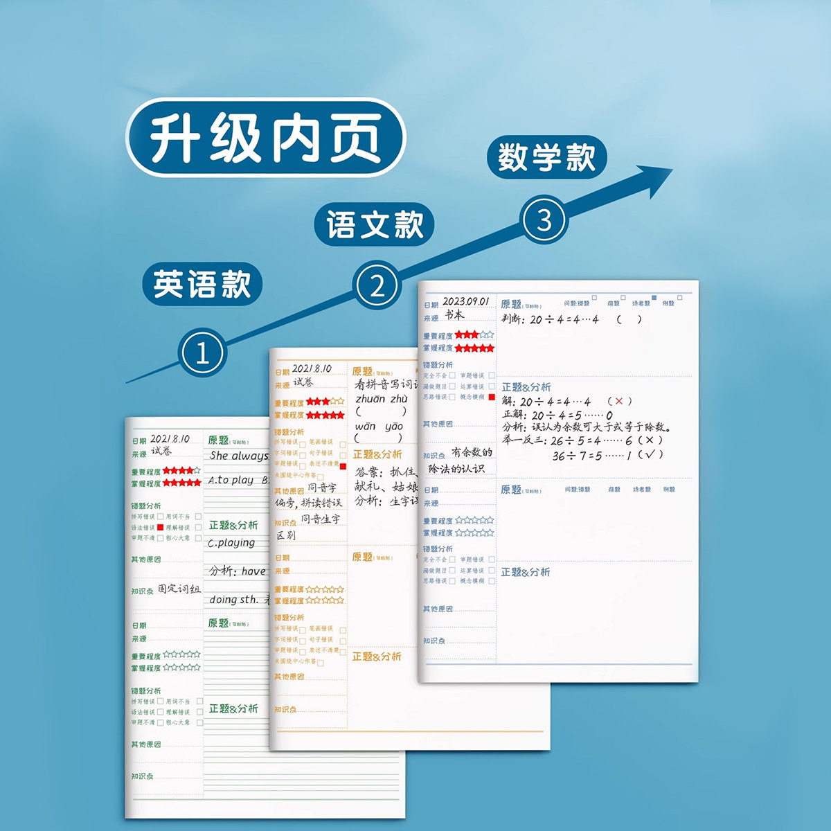 📚 错题本小学生专用一年级二年级三四五六年级数学语文英语纠错本子加厚改错整理神器订正本错字记录集开学必备